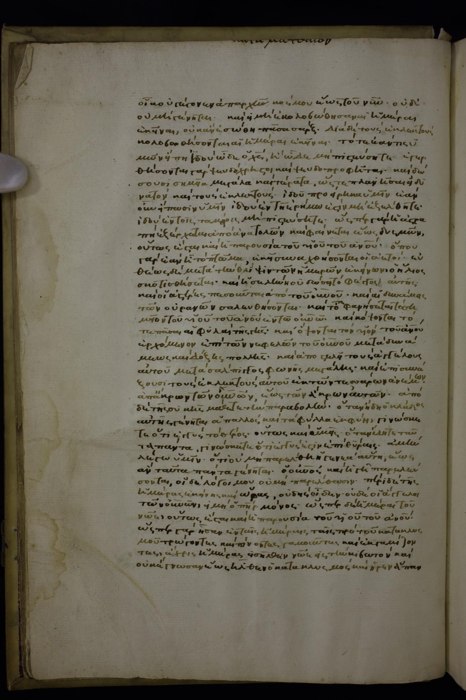 Περὶ δὲ τῆς ἡμέρας ἐκείνης καὶ ὥρας οὐδεὶς οἶδεν, οὐδὲ οἱ ἄγγελοι τῶν οὐρανῶν οὐδὲ ὁ υἱός, εἰ μὴ ὁ πατὴρ μόνος.