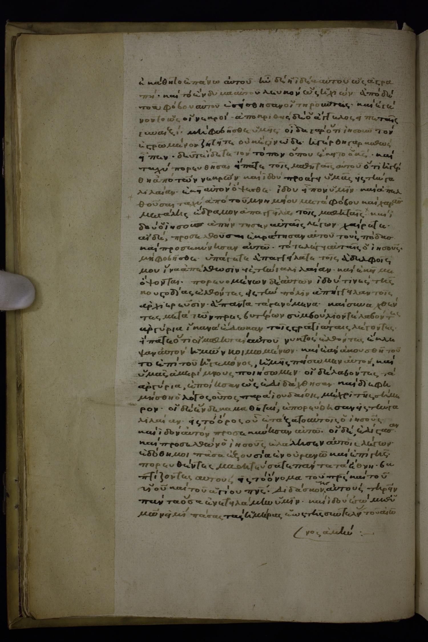 Fifteenth century minuscule of the Gospels, Apostolos, Paul, and Revelation (complete New Testament) on parchment and paper; 213 leaves, single column, 37–38 lines per column.