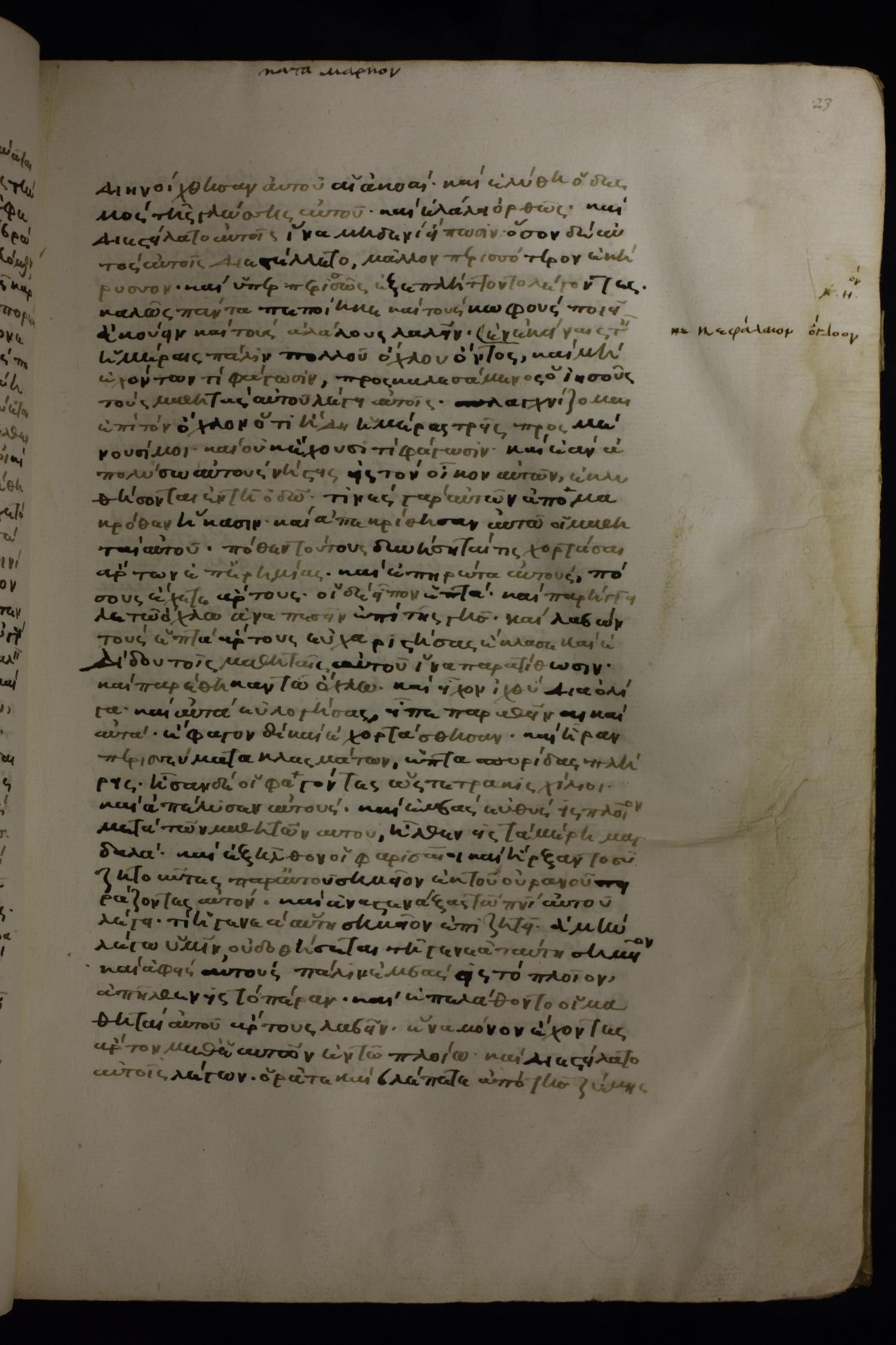 Ἐν ἐκείναις ταῖς ἡμέραις πάλιν πολλοῦ ὄχλου ὄντος καὶ μὴ ἐχόντων τί φάγωσιν, προσκαλεσάμενος τοὺς μαθητὰς λέγει αὐτοῖς