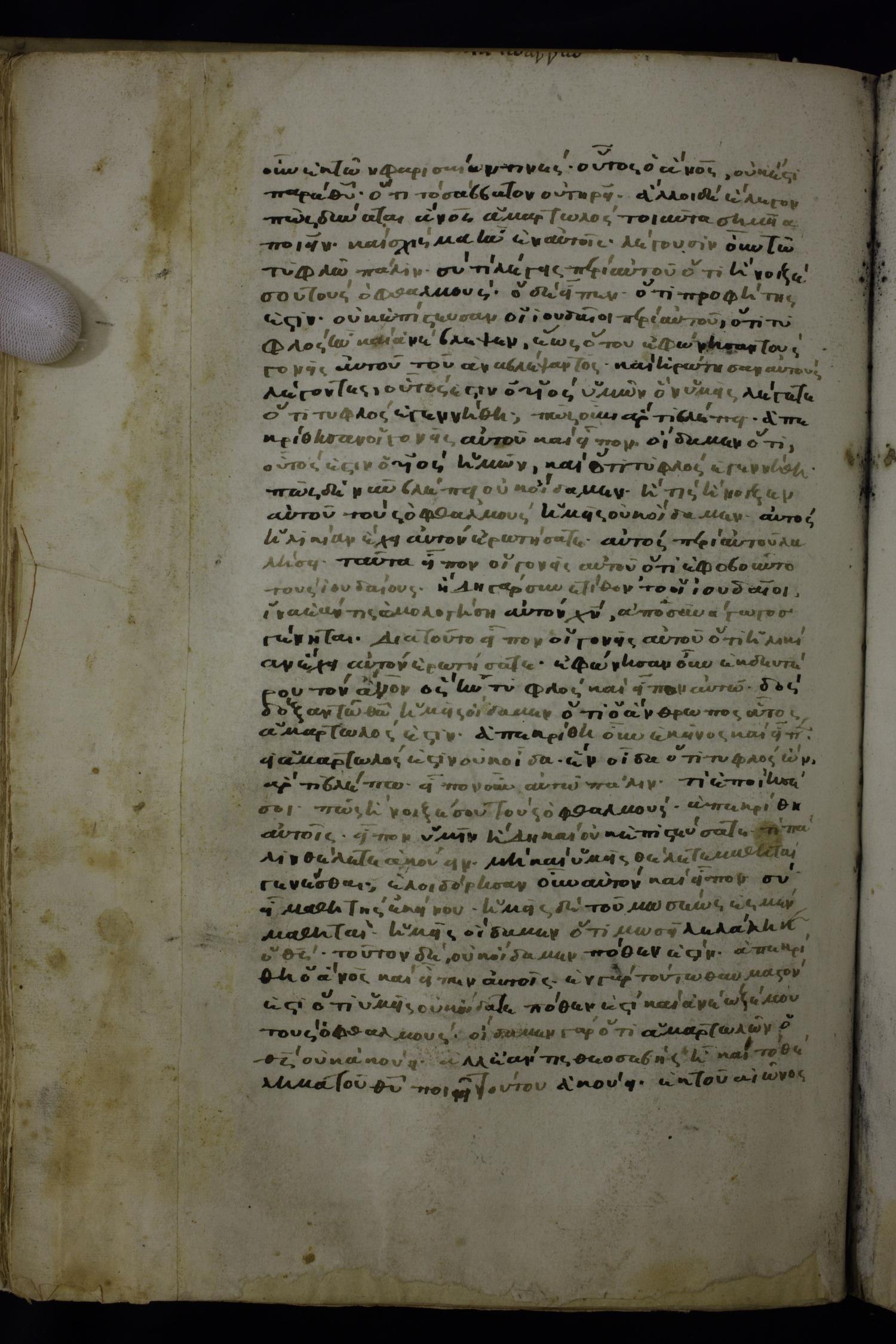 πῶς δὲ νῦν βλέπει οὐκ οἴδαμεν, ἢ τίς ἤνοιξεν αὐτοῦ τοὺς ὀφθαλμοὺς ἡμεῖς οὐκ οἴδαμεν· αὐτὸν ἐρωτήσατε, ἡλικίαν ἔχει, αὐτὸς περὶ ἑαυτοῦ λαλήσει.