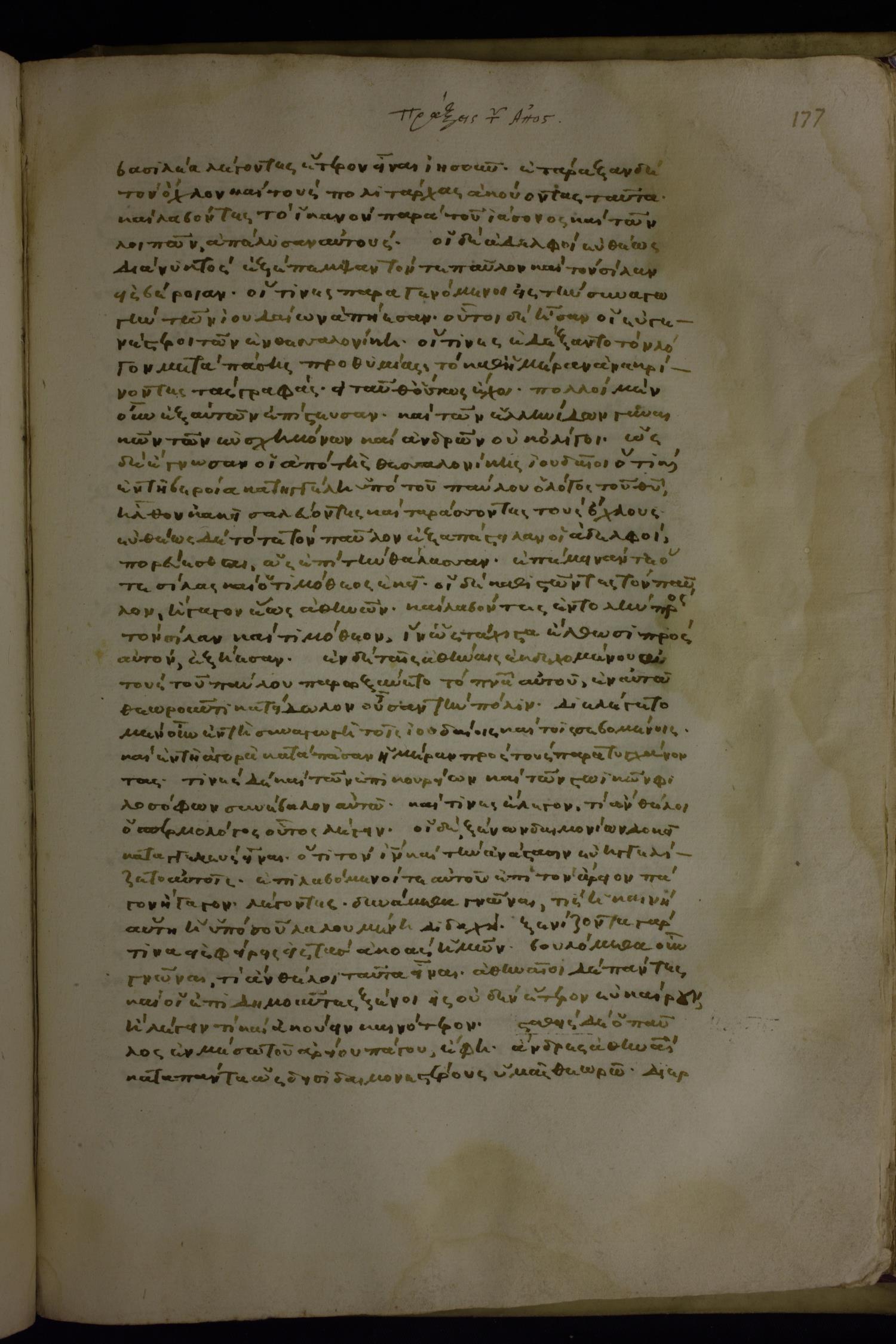 Fifteenth century minuscule of the Gospels, Apostolos, Paul, and Revelation (complete New Testament) on parchment and paper; 213 leaves, single column, 37–38 lines per column.