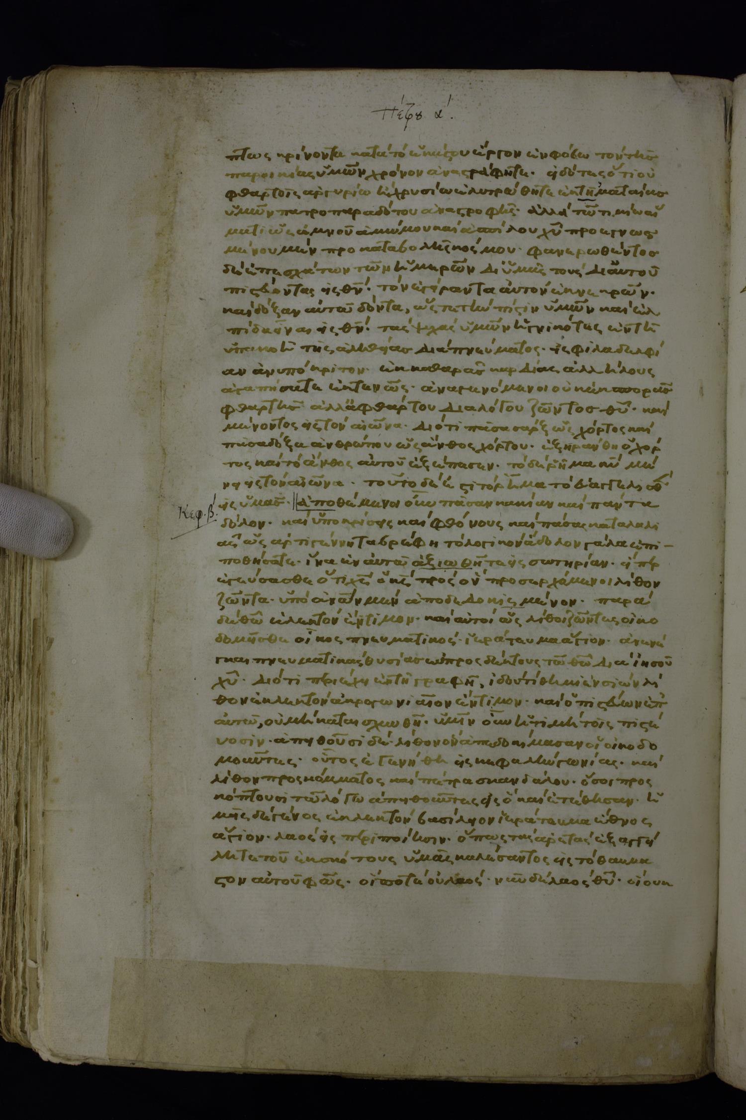 Τὰς ψυχὰς ὑμῶν ἡγνικότες ἐν τῇ ὑπακοῇ τῆς ἀληθείας εἰς φιλαδελφίαν ἀνυπόκριτον ἐκ {καθαρᾶς} καρδίας ἀλλήλους ἀγαπήσατε ἐκτενῶς,