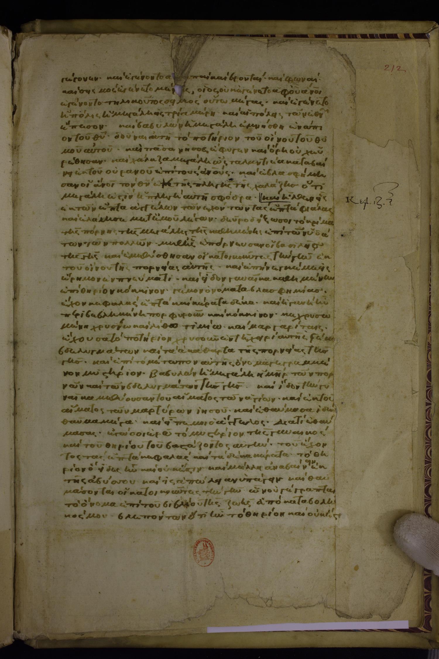 Fifteenth century minuscule of the Gospels, Apostolos, Paul, and Revelation (complete New Testament) on parchment and paper; 213 leaves, single column, 37–38 lines per column.