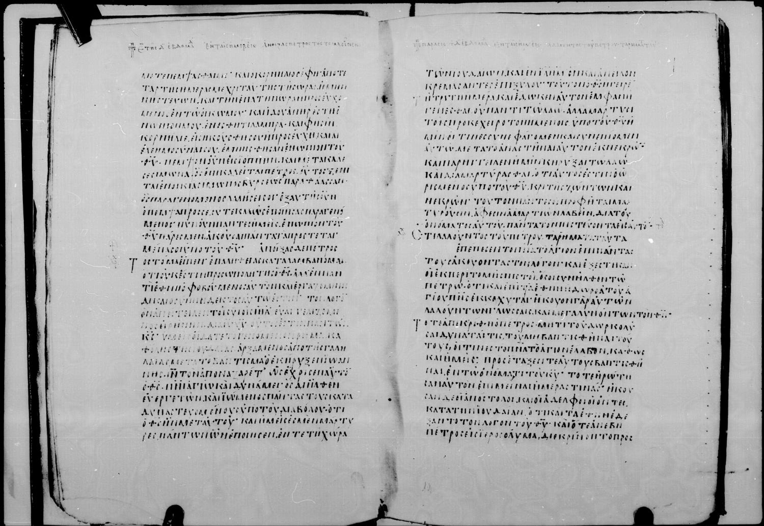 Codex Mutinensis is a ninth century manuscript of the Apostolos on parchment; 43 leaves, single column, 30 lines per column. Digital images are from microfilm.