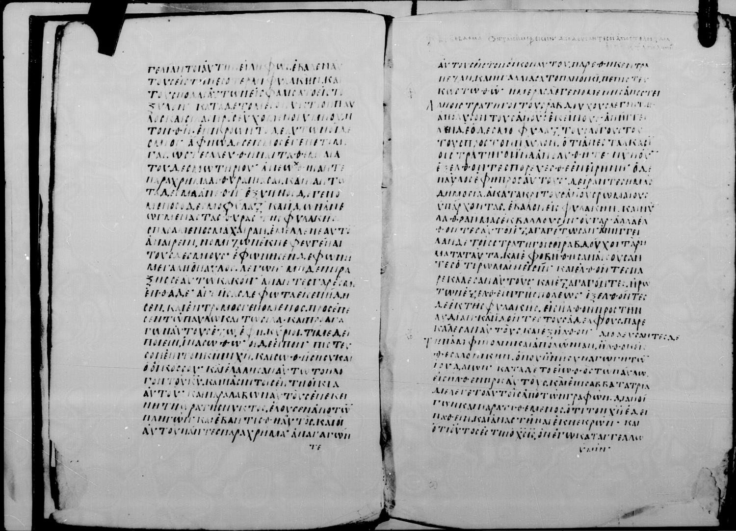 Codex Mutinensis is a ninth century manuscript of the Apostolos on parchment; 43 leaves, single column, 30 lines per column. Digital images are from microfilm.