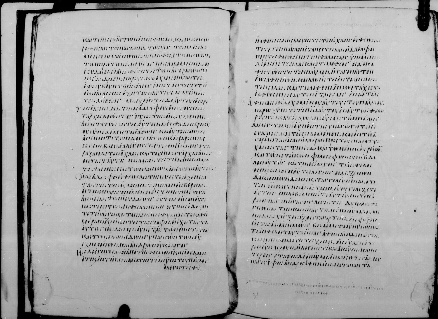 Codex Mutinensis is a ninth century manuscript of the Apostolos on parchment; 43 leaves, single column, 30 lines per column. Digital images are from microfilm.
