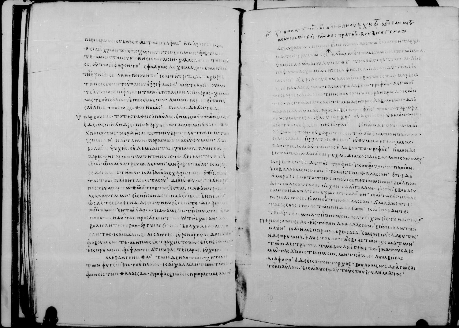 Codex Mutinensis is a ninth century manuscript of the Apostolos on parchment; 43 leaves, single column, 30 lines per column. Digital images are from microfilm.