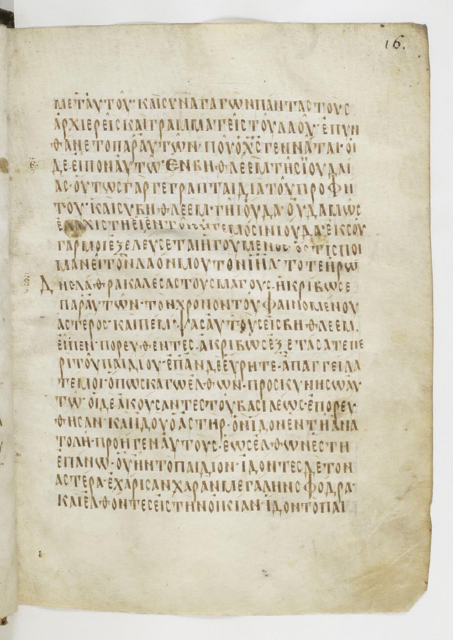 Codex Cyprius is a ninth century manuscript of the Gospels on parchment; 267 leaves, single column, 16–31 lines per column. For recent images, please visit the Bibliothèque Nationale