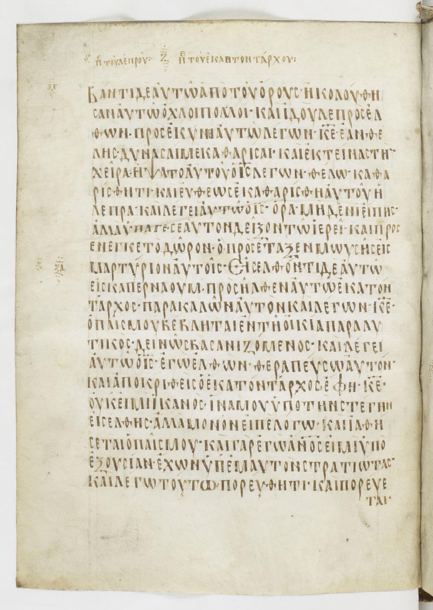 Εἰσελθόντος δὲ αὐτοῦ εἰς Καφαρναοὺμ προσῆλθεν αὐτῷ ἑκατόνταρχος παρακαλῶν αὐτὸν