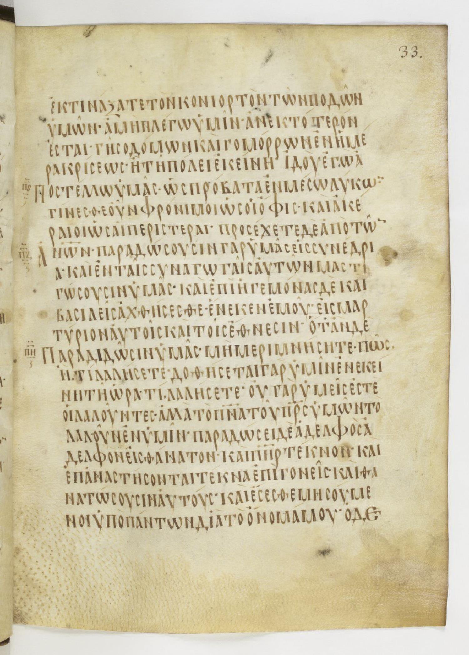 Codex Cyprius is a ninth century manuscript of the Gospels on parchment; 267 leaves, single column, 16–31 lines per column. For recent images, please visit the Bibliothèque Nationale