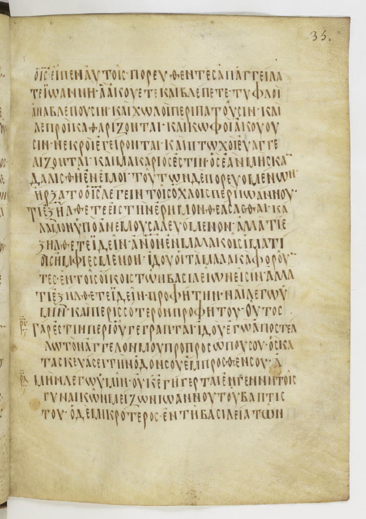 τυφλοὶ ἀναβλέπουσιν καὶ χωλοὶ περιπατοῦσιν, λεπροὶ καθαρίζονται καὶ κωφοὶ ἀκούουσιν, καὶ νεκροὶ ἐγείρονται καὶ πτωχοὶ εὐαγγελίζονται·