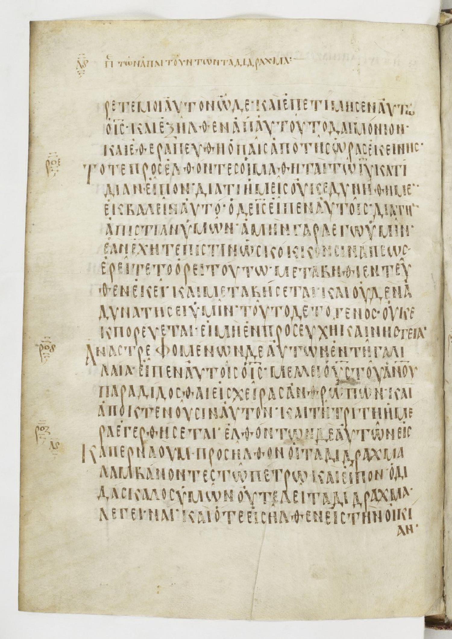 Codex Cyprius is a ninth century manuscript of the Gospels on parchment; 267 leaves, single column, 16–31 lines per column. For recent images, please visit the Bibliothèque Nationale
