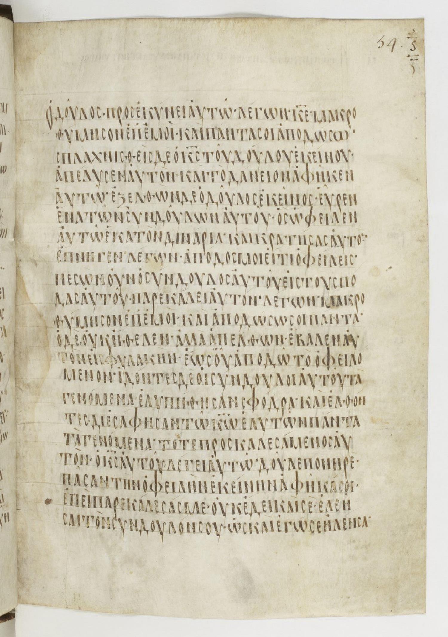 πεσὼν οὖν ὁ σύνδουλος αὐτοῦ παρεκάλει αὐτὸν λέγων Μακροθύμησον ἐπ´ ἐμοί, καὶ ἀποδώσω σοι.