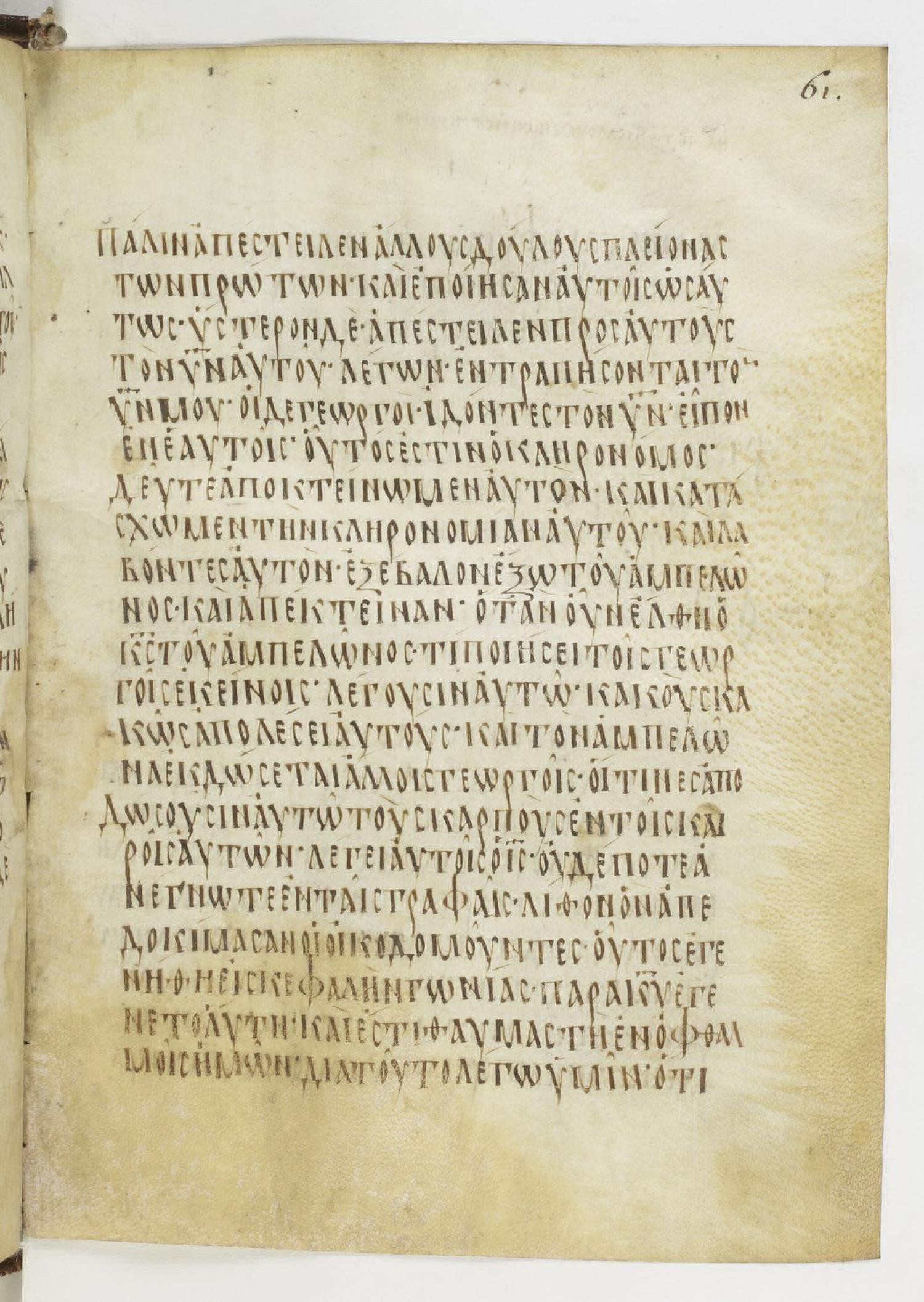 Codex Cyprius is a ninth century manuscript of the Gospels on parchment; 267 leaves, single column, 16–31 lines per column. For recent images, please visit the Bibliothèque Nationale