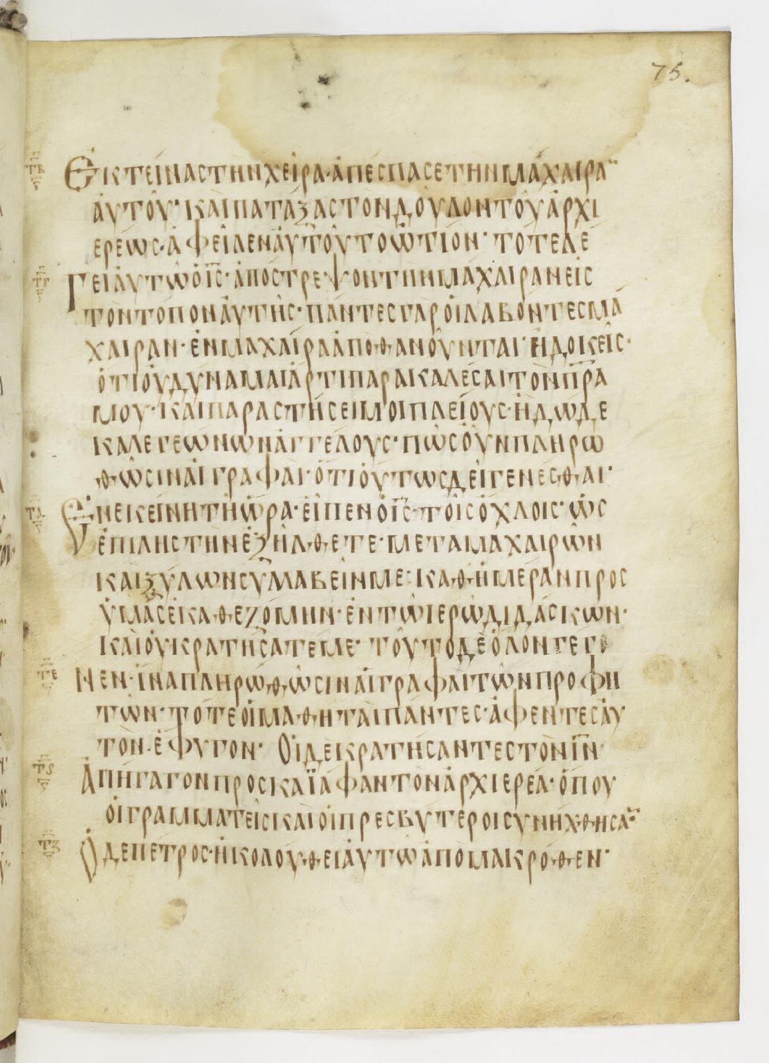 Codex Cyprius is a ninth century manuscript of the Gospels on parchment; 267 leaves, single column, 16–31 lines per column. For recent images, please visit the Bibliothèque Nationale