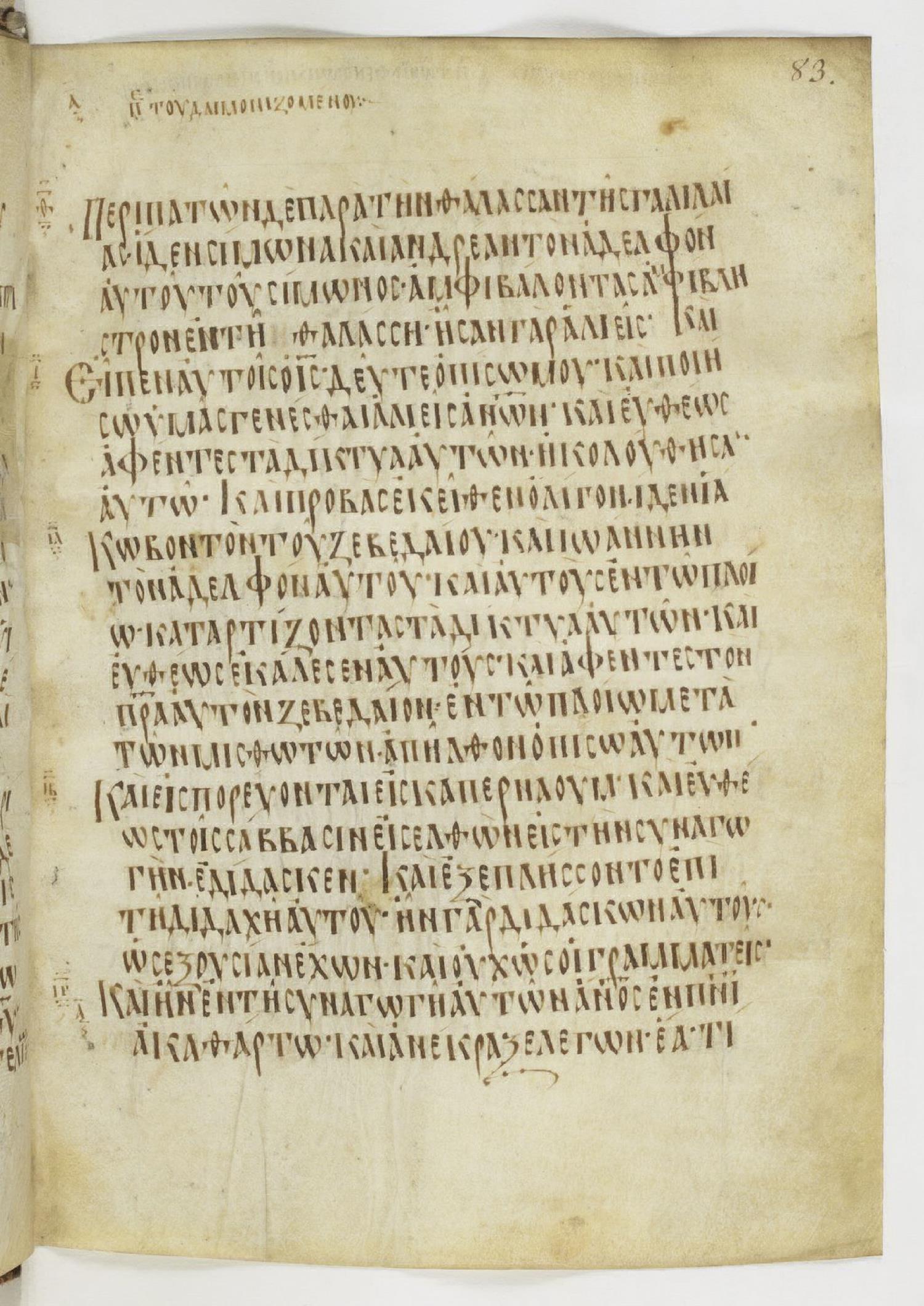 Codex Cyprius is a ninth century manuscript of the Gospels on parchment; 267 leaves, single column, 16–31 lines per column. For recent images, please visit the Bibliothèque Nationale