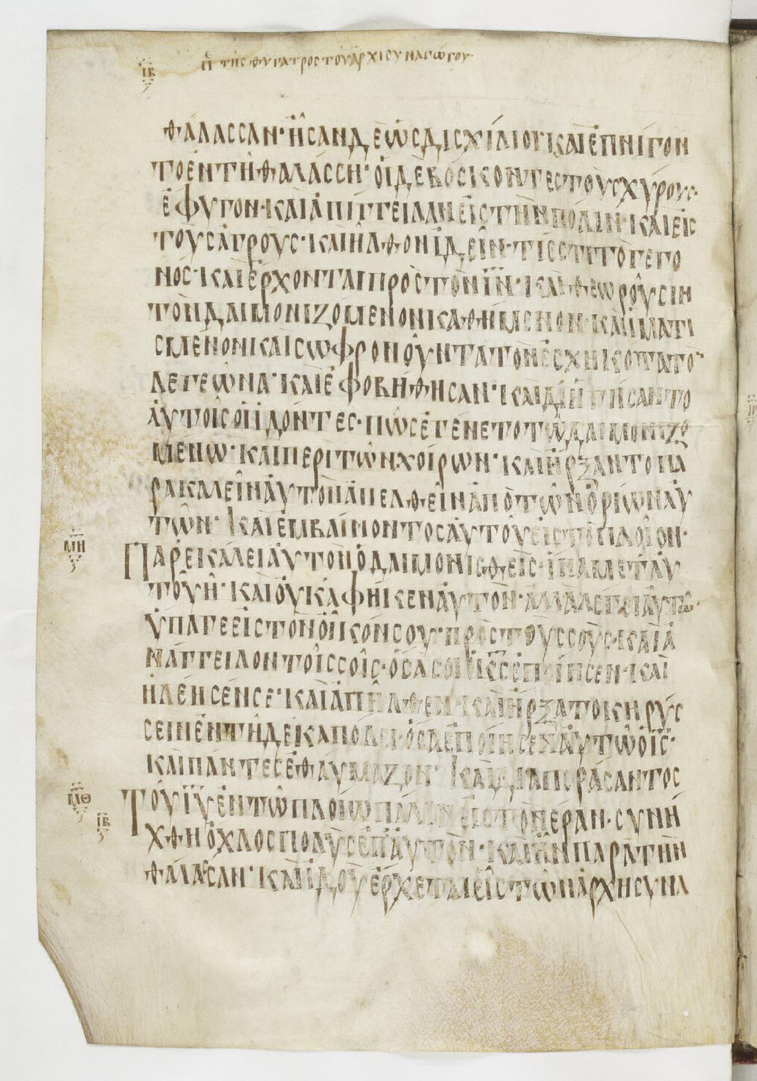 Codex Cyprius is a ninth century manuscript of the Gospels on parchment; 267 leaves, single column, 16–31 lines per column. For recent images, please visit the Bibliothèque Nationale