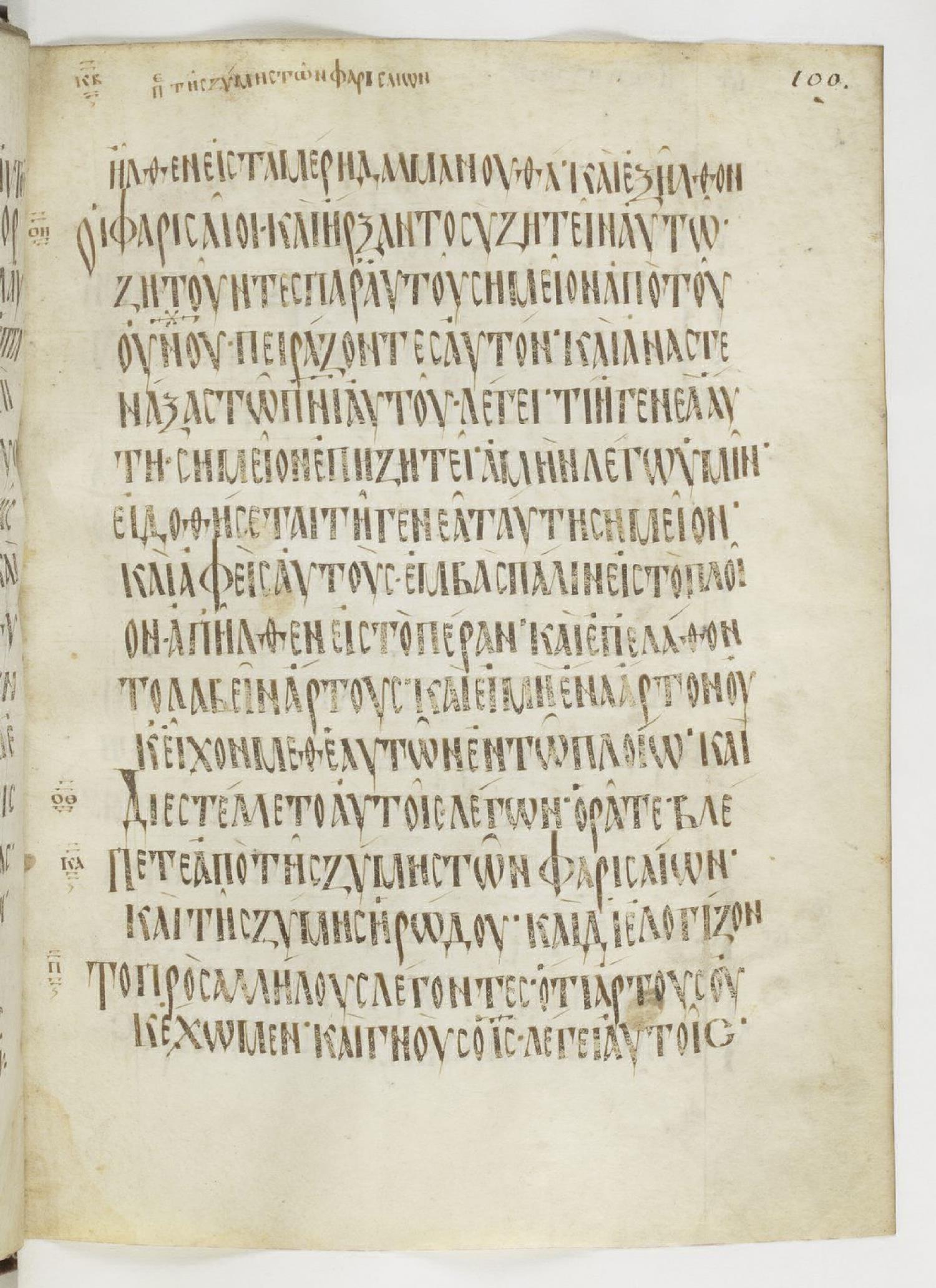 Codex Cyprius is a ninth century manuscript of the Gospels on parchment; 267 leaves, single column, 16–31 lines per column. For recent images, please visit the Bibliothèque Nationale