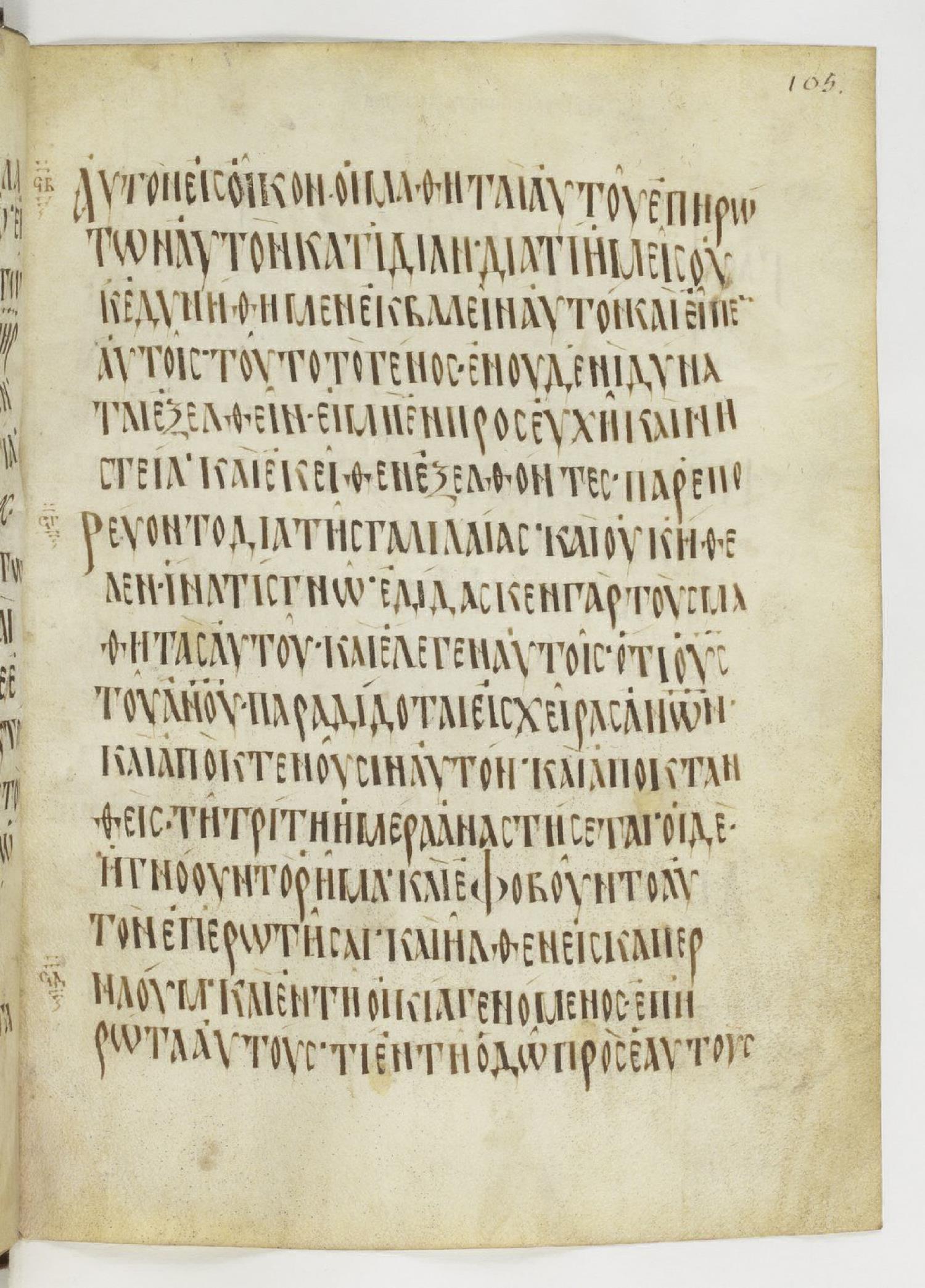Codex Cyprius is a ninth century manuscript of the Gospels on parchment; 267 leaves, single column, 16–31 lines per column. For recent images, please visit the Bibliothèque Nationale