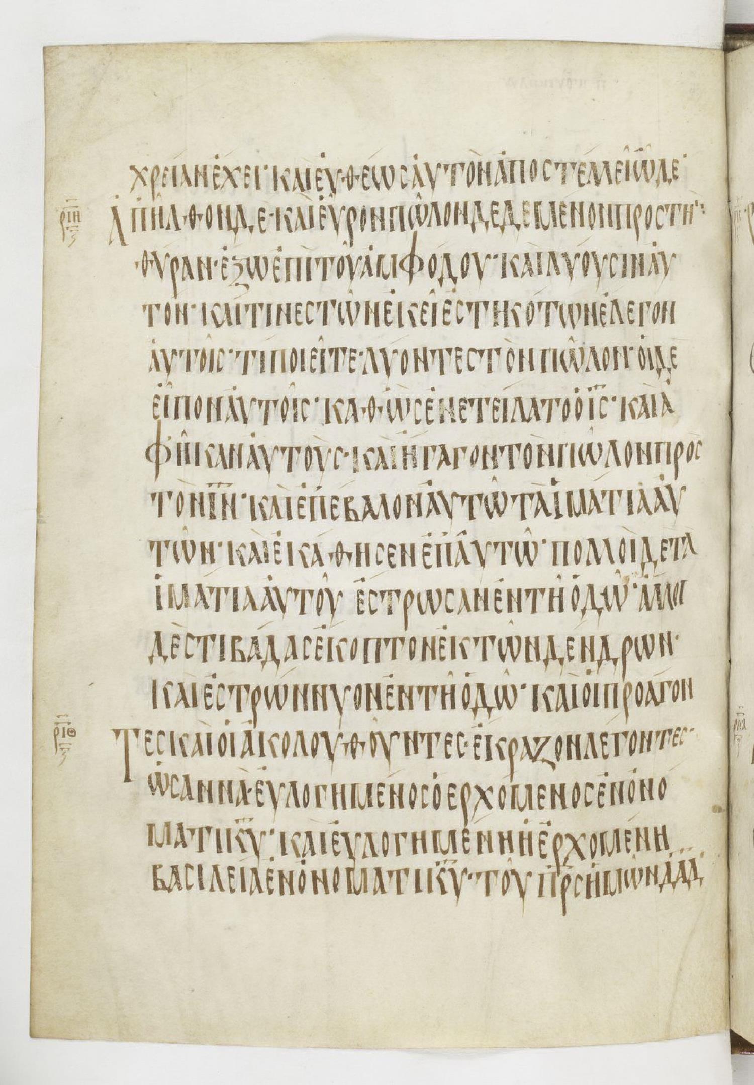 Codex Cyprius is a ninth century manuscript of the Gospels on parchment; 267 leaves, single column, 16–31 lines per column. For recent images, please visit the Bibliothèque Nationale