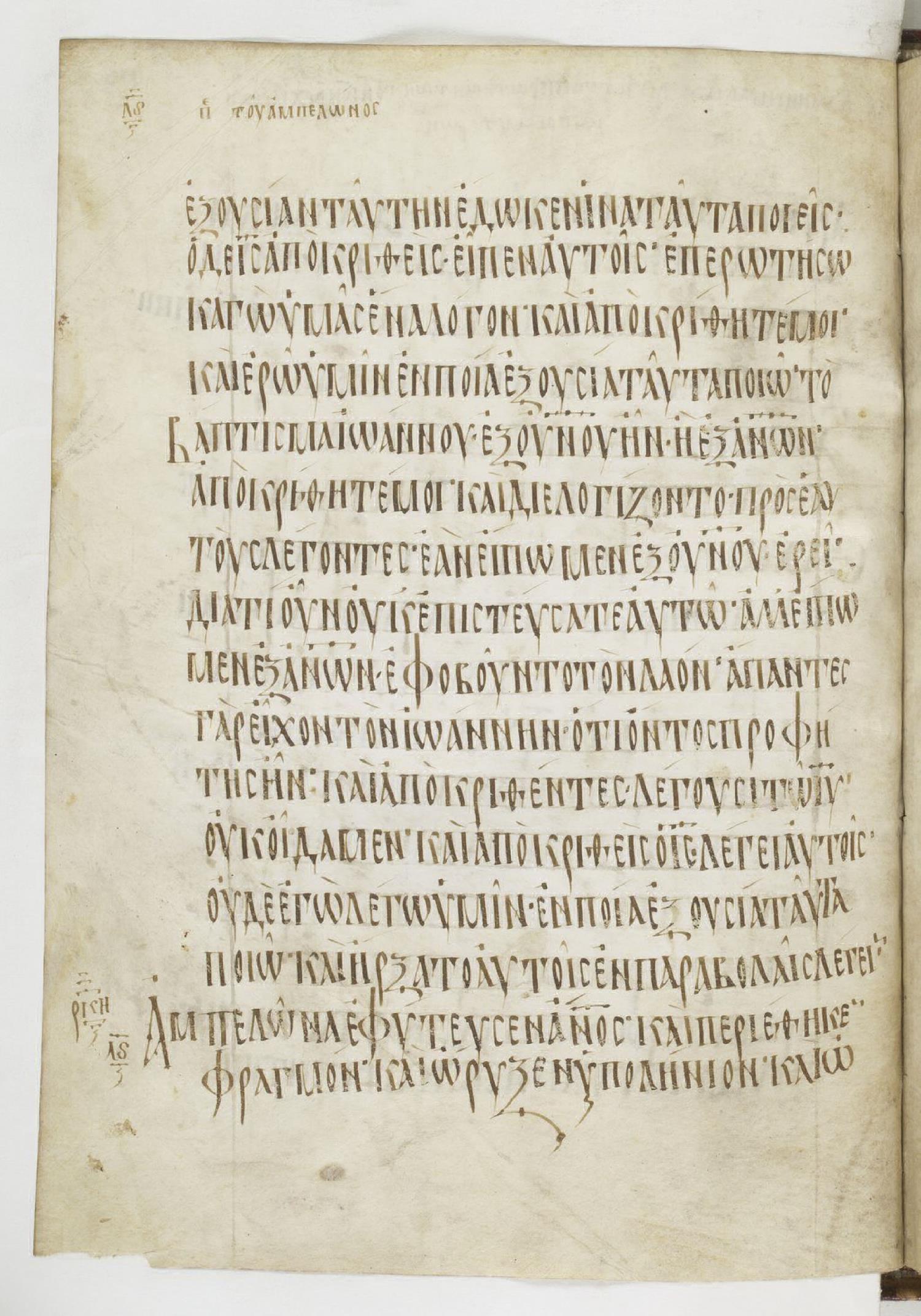 ὁ δὲ Ἰησοῦς εἶπεν αὐτοῖς Ἐπερωτήσω ὑμᾶς ἕνα λόγον, καὶ ἀποκρίθητέ μοι, καὶ ἐρῶ ὑμῖν ἐν ποίᾳ ἐξουσίᾳ ταῦτα ποιῶ·