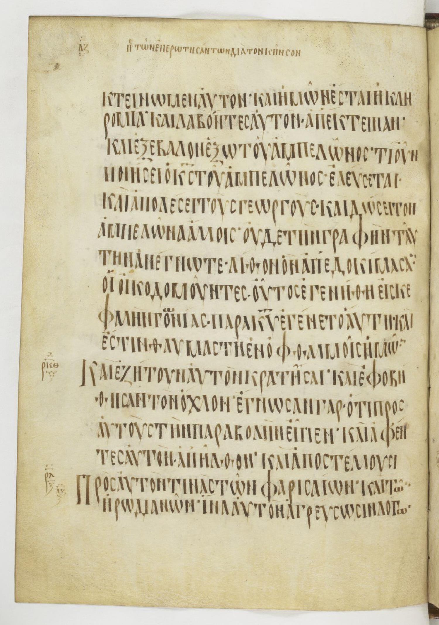Codex Cyprius is a ninth century manuscript of the Gospels on parchment; 267 leaves, single column, 16–31 lines per column. For recent images, please visit the Bibliothèque Nationale