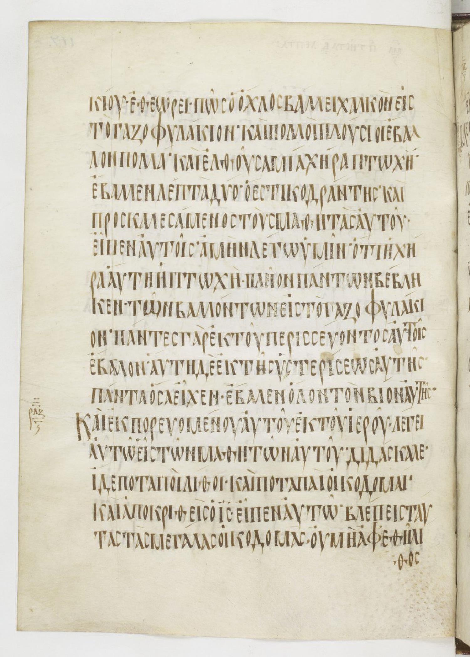 Codex Cyprius is a ninth century manuscript of the Gospels on parchment; 267 leaves, single column, 16–31 lines per column. For recent images, please visit the Bibliothèque Nationale