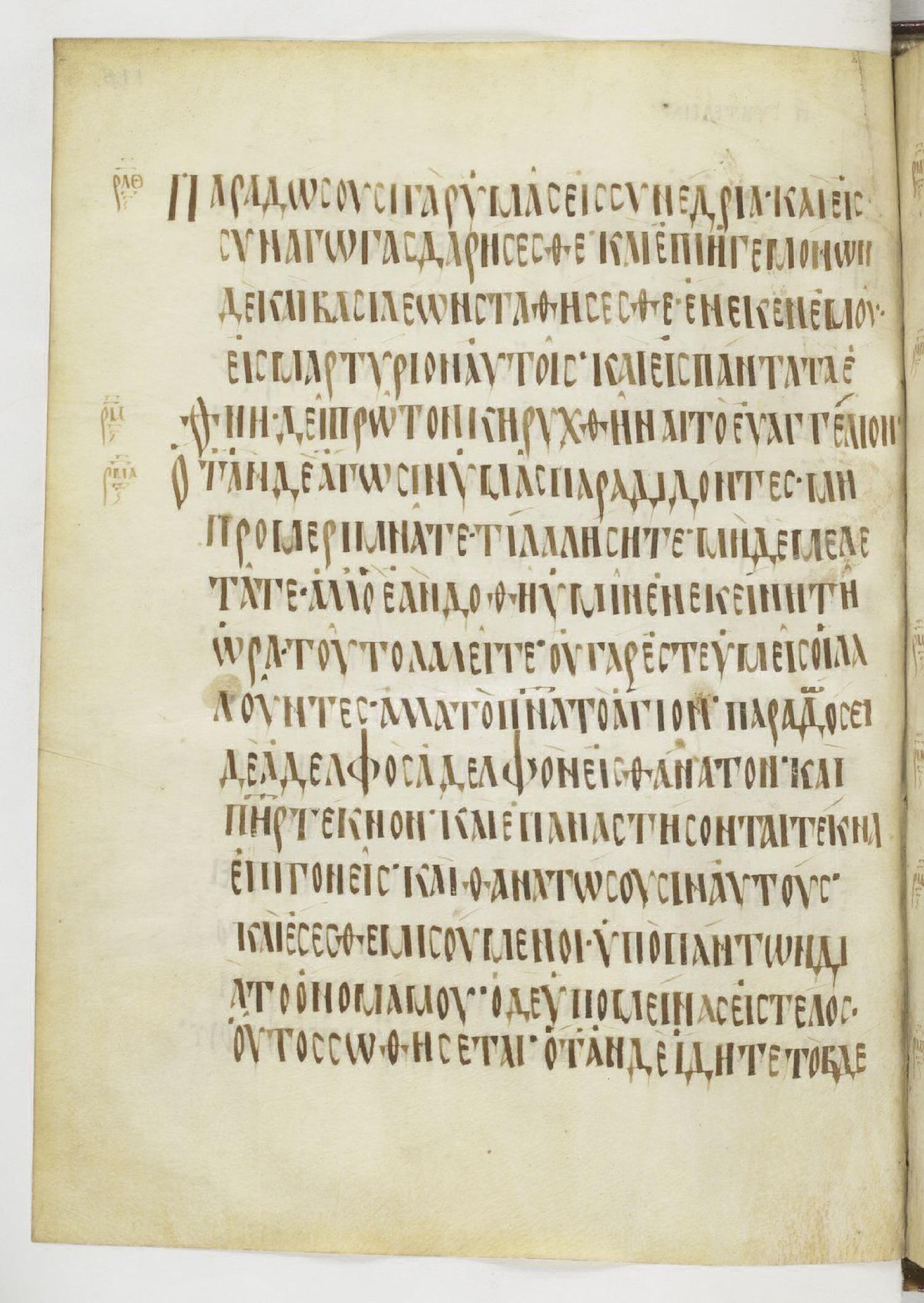 Codex Cyprius is a ninth century manuscript of the Gospels on parchment; 267 leaves, single column, 16–31 lines per column. For recent images, please visit the Bibliothèque Nationale