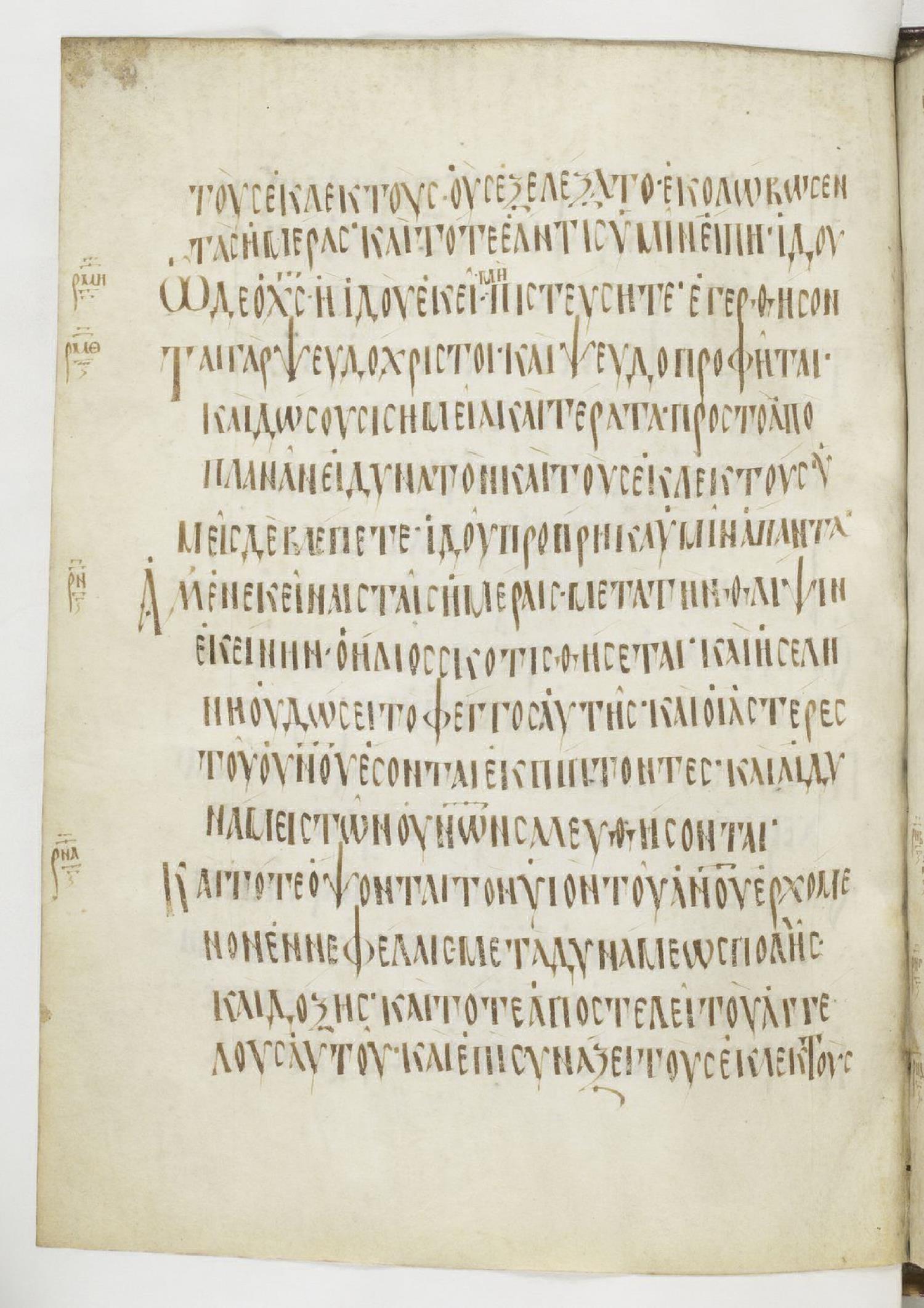 Codex Cyprius is a ninth century manuscript of the Gospels on parchment; 267 leaves, single column, 16–31 lines per column. For recent images, please visit the Bibliothèque Nationale