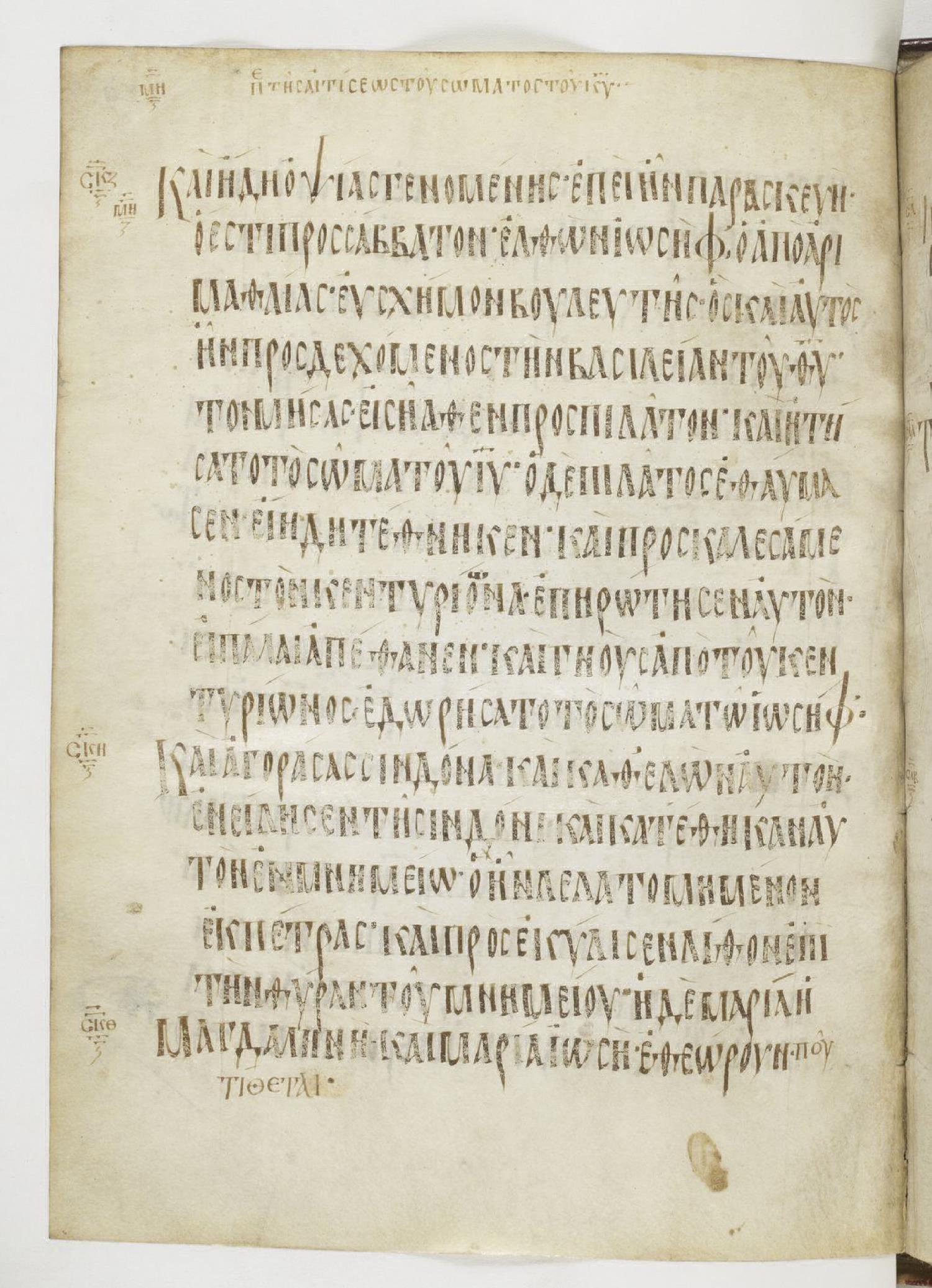 Codex Cyprius is a ninth century manuscript of the Gospels on parchment; 267 leaves, single column, 16–31 lines per column. For recent images, please visit the Bibliothèque Nationale