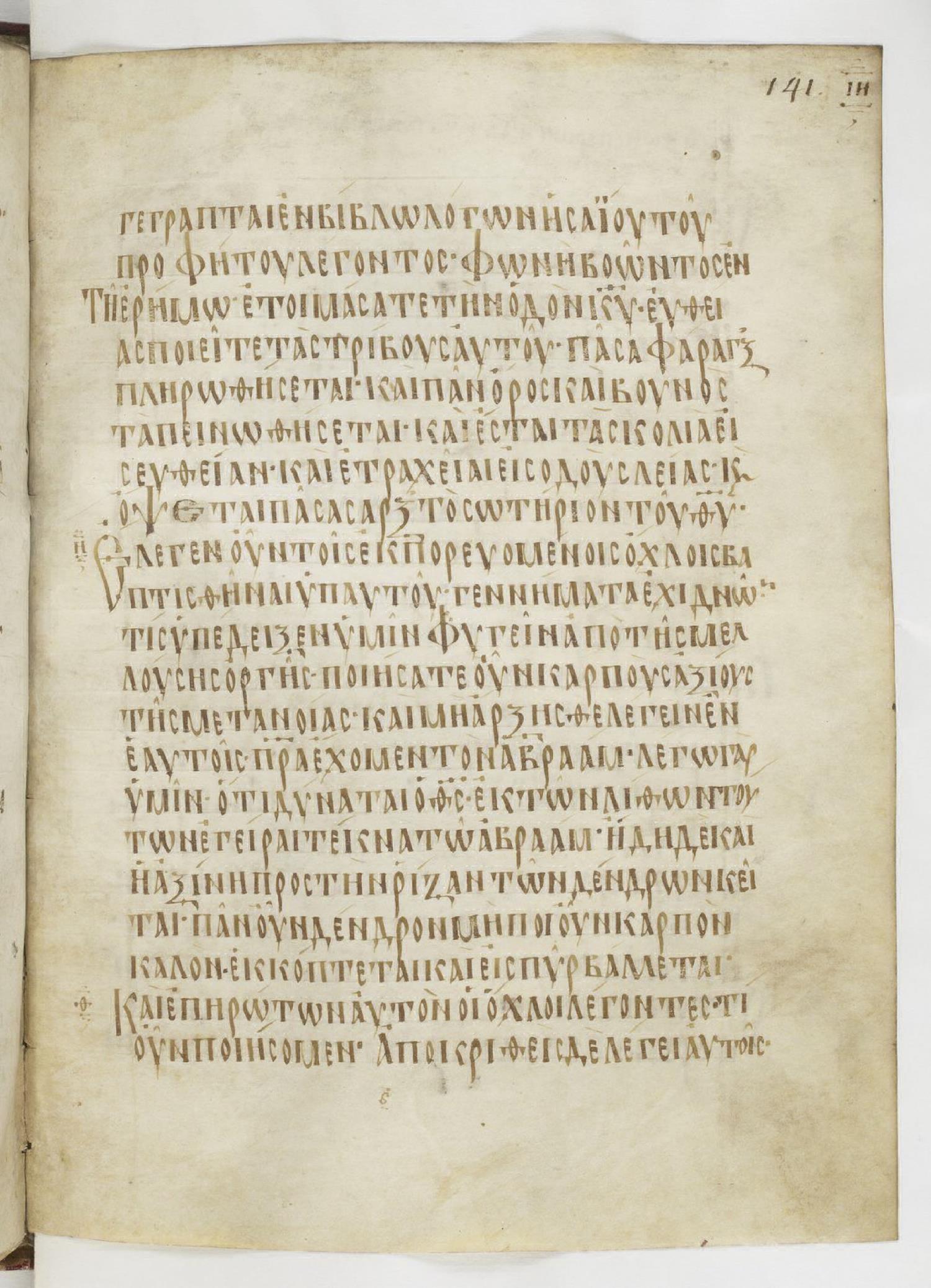 Codex Cyprius is a ninth century manuscript of the Gospels on parchment; 267 leaves, single column, 16–31 lines per column. For recent images, please visit the Bibliothèque Nationale