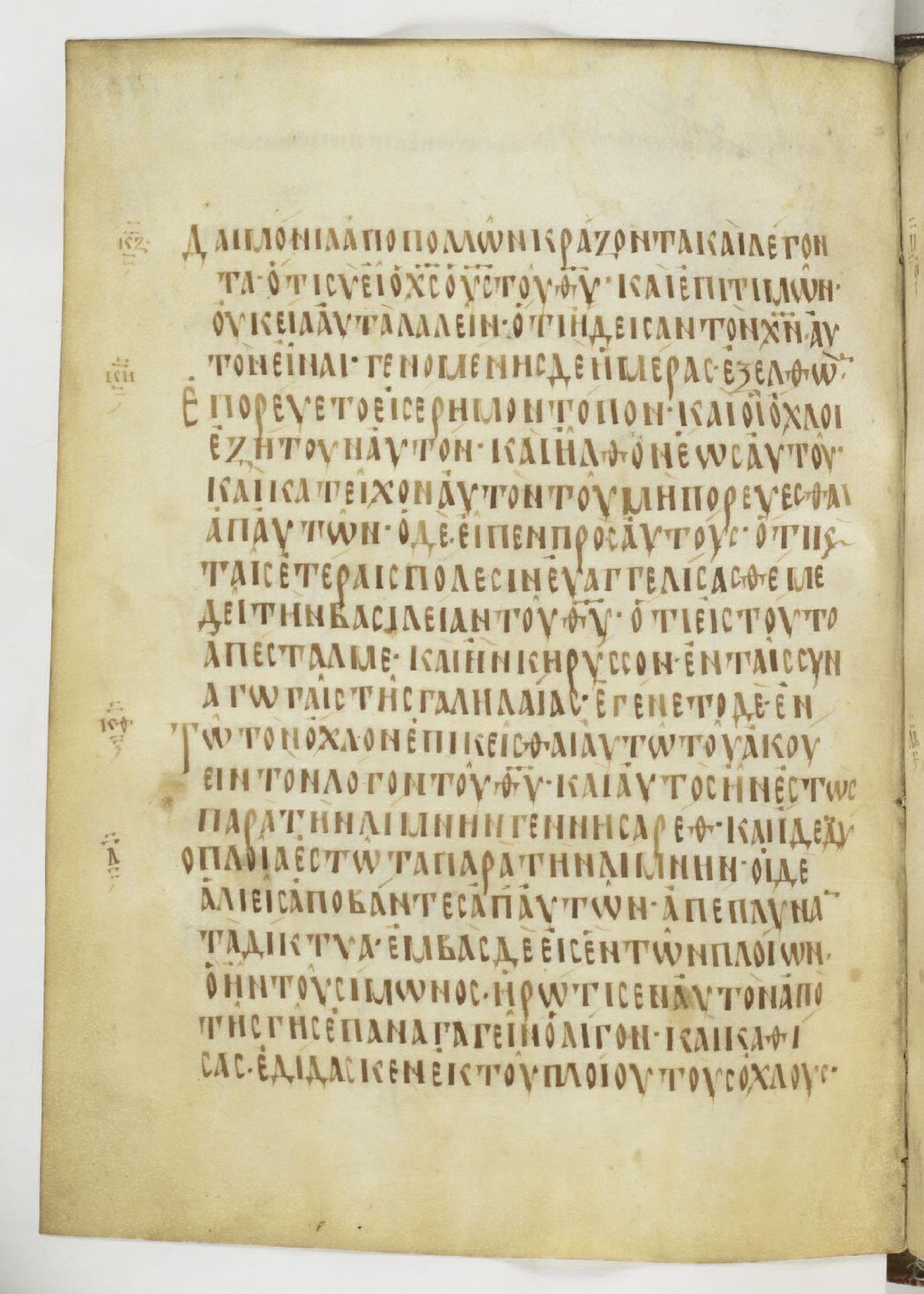 Codex Cyprius is a ninth century manuscript of the Gospels on parchment; 267 leaves, single column, 16–31 lines per column. For recent images, please visit the Bibliothèque Nationale