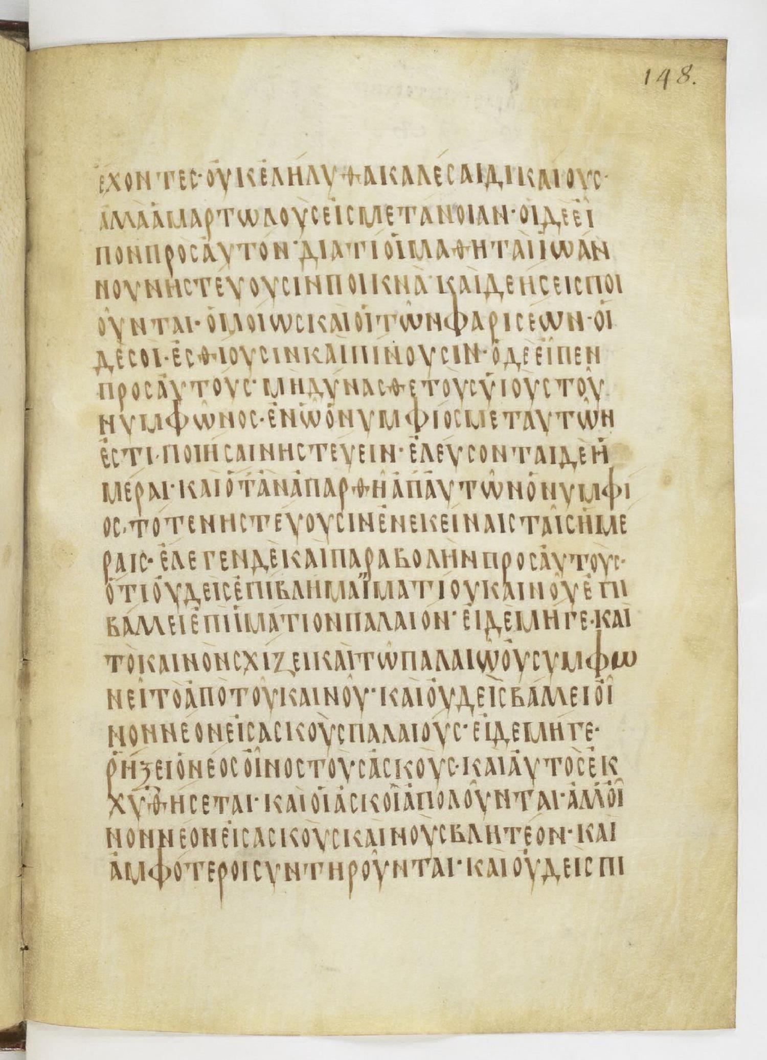 Codex Cyprius is a ninth century manuscript of the Gospels on parchment; 267 leaves, single column, 16–31 lines per column. For recent images, please visit the Bibliothèque Nationale
