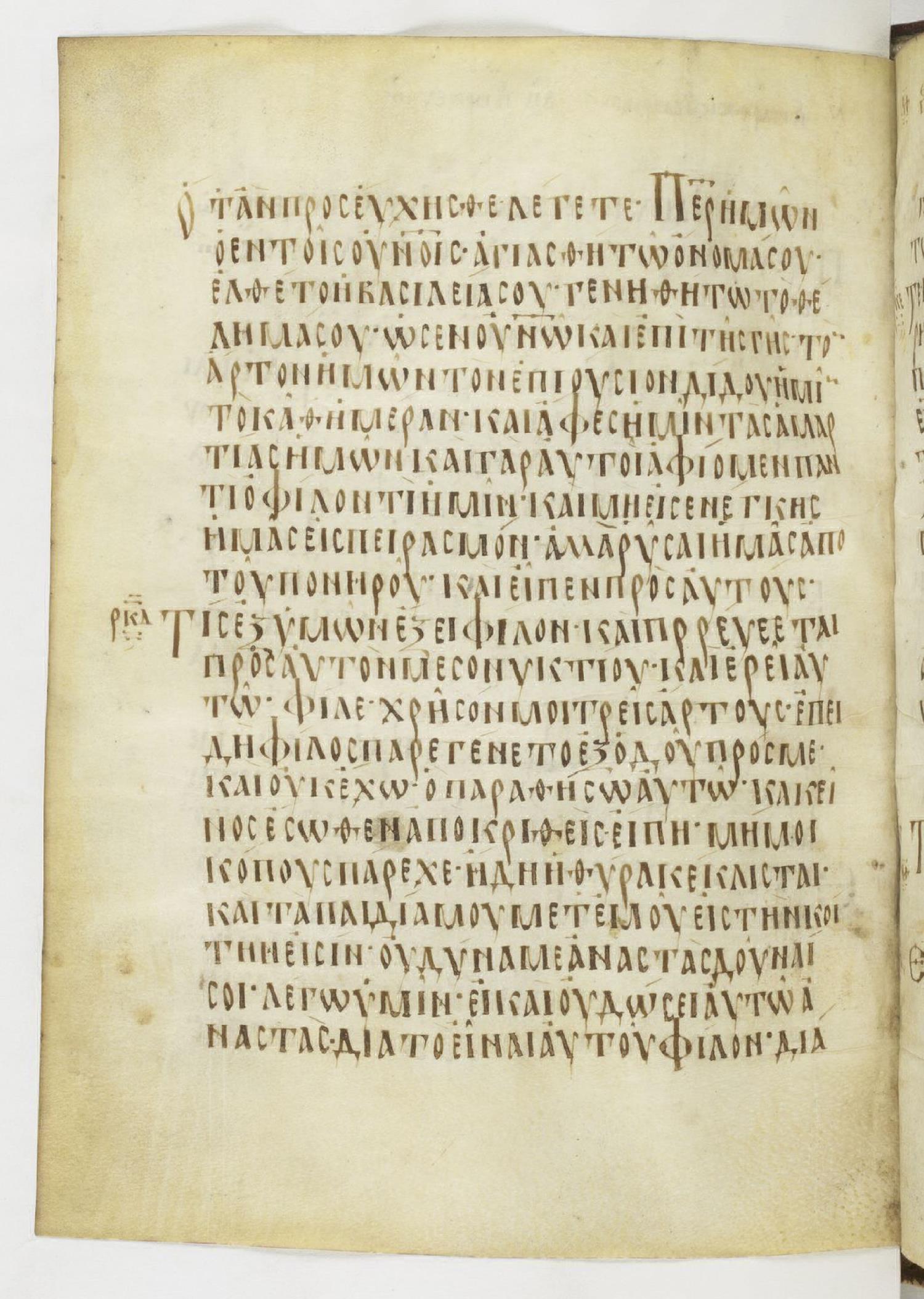 Codex Cyprius is a ninth century manuscript of the Gospels on parchment; 267 leaves, single column, 16–31 lines per column. For recent images, please visit the Bibliothèque Nationale