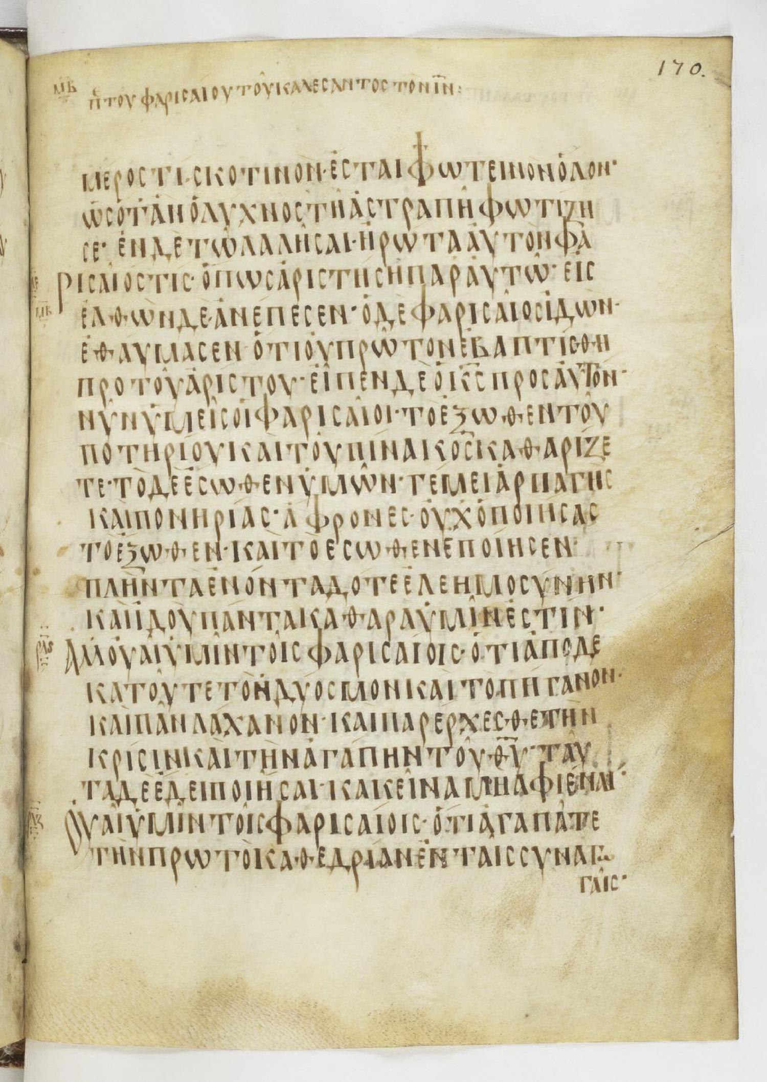Codex Cyprius is a ninth century manuscript of the Gospels on parchment; 267 leaves, single column, 16–31 lines per column. For recent images, please visit the Bibliothèque Nationale