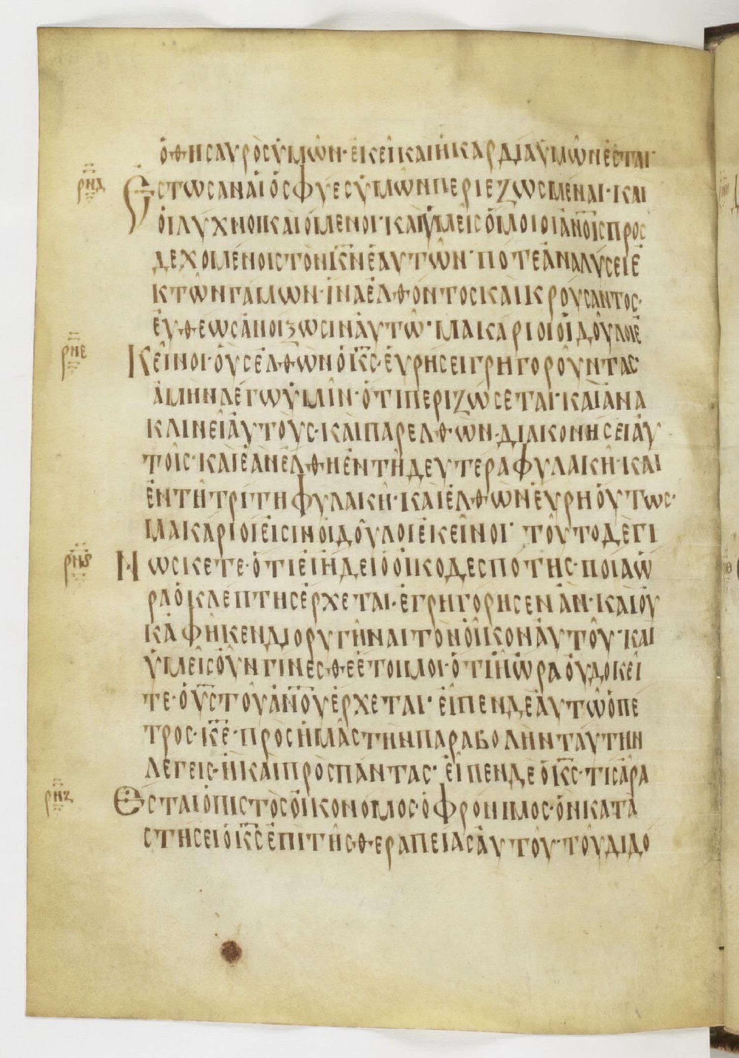 Codex Cyprius is a ninth century manuscript of the Gospels on parchment; 267 leaves, single column, 16–31 lines per column. For recent images, please visit the Bibliothèque Nationale