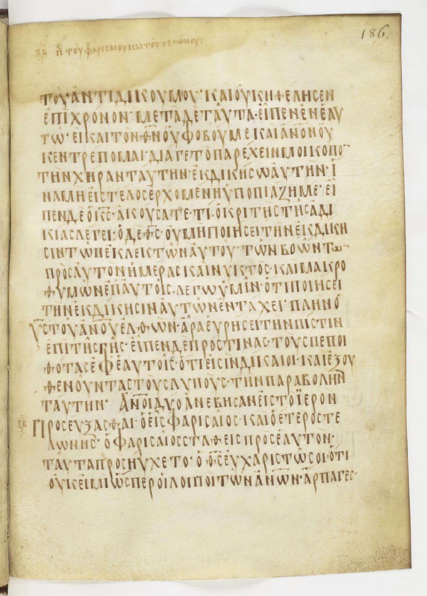 Codex Cyprius is a ninth century manuscript of the Gospels on parchment; 267 leaves, single column, 16–31 lines per column. For recent images, please visit the Bibliothèque Nationale
