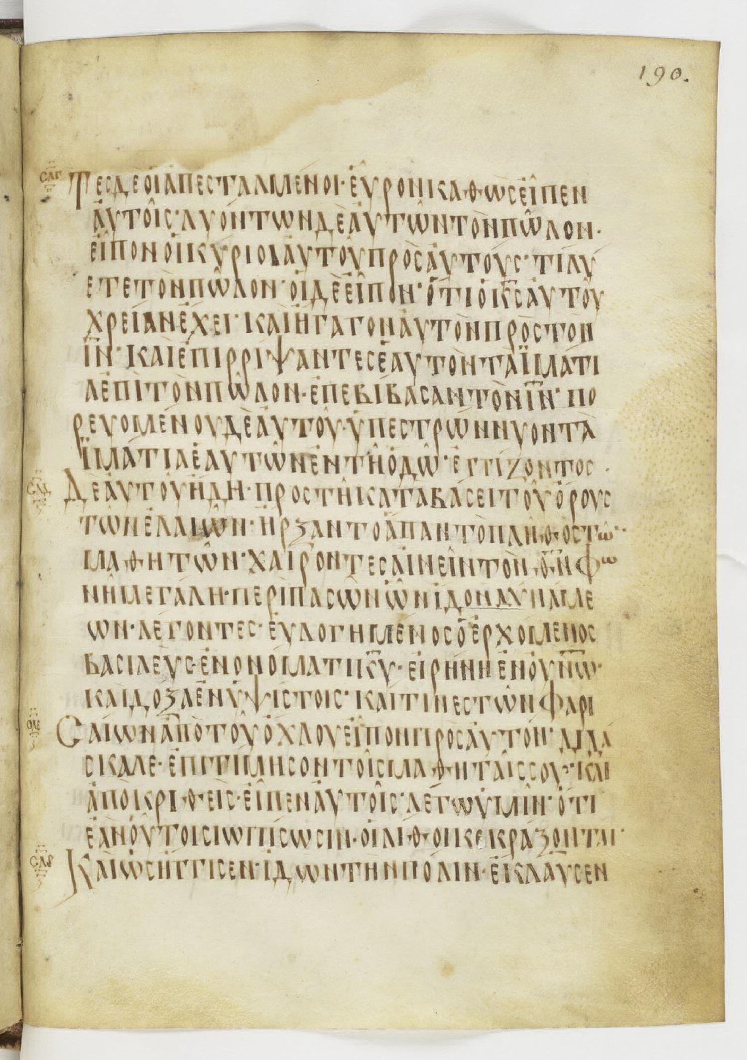 Codex Cyprius is a ninth century manuscript of the Gospels on parchment; 267 leaves, single column, 16–31 lines per column. For recent images, please visit the Bibliothèque Nationale
