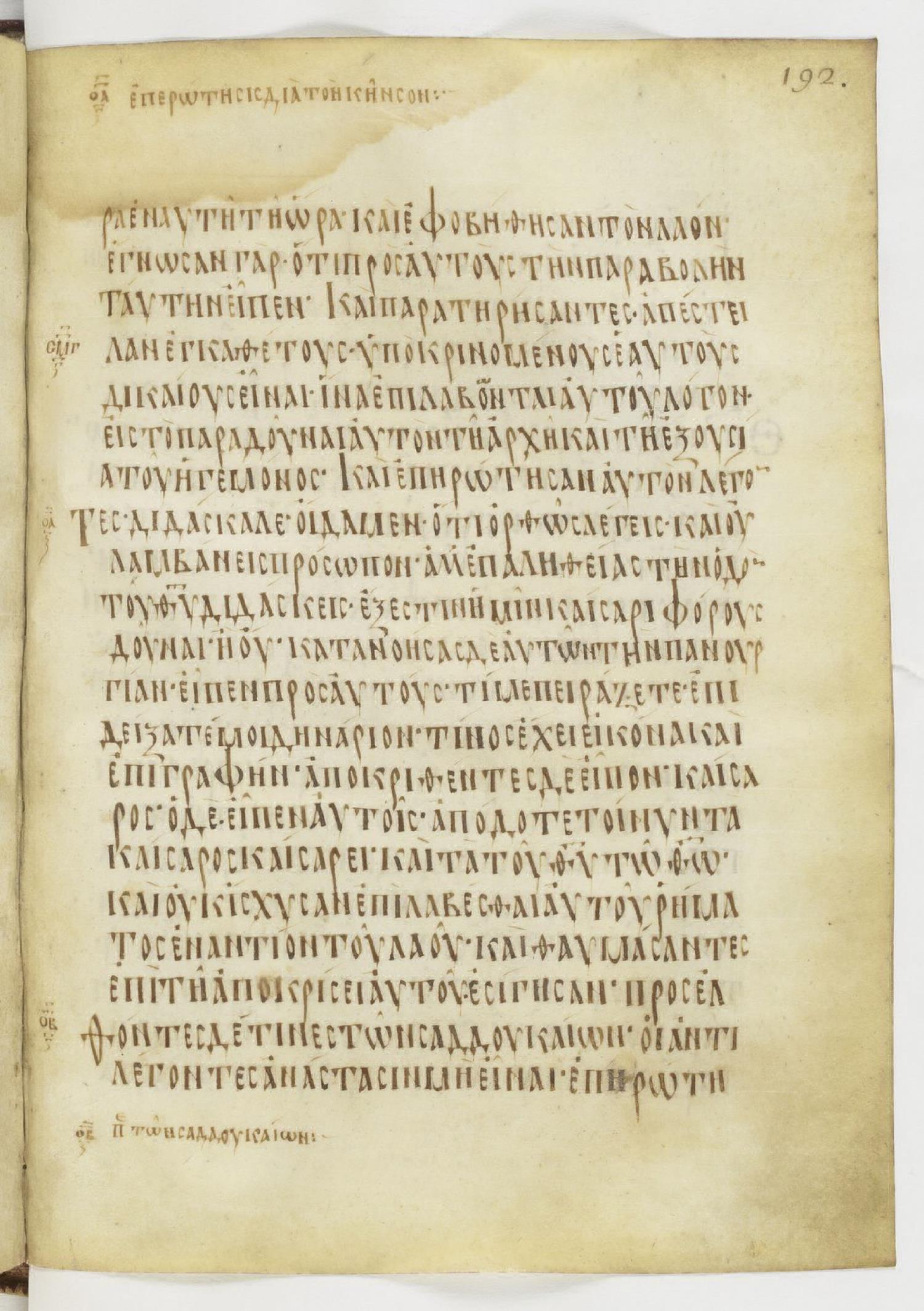 Codex Cyprius is a ninth century manuscript of the Gospels on parchment; 267 leaves, single column, 16–31 lines per column. For recent images, please visit the Bibliothèque Nationale