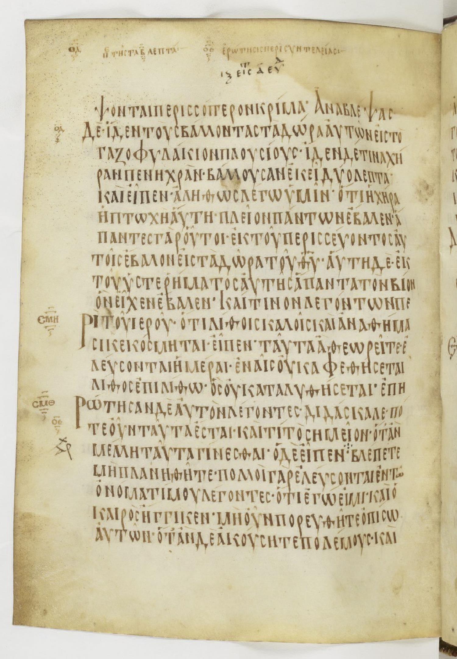 ἐπηρώτησαν δὲ αὐτὸν λέγοντες Διδάσκαλε, πότε οὖν ταῦτα ἔσται, καὶ τί τὸ σημεῖον ὅταν μέλλῃ ταῦτα γίνεσθαι;