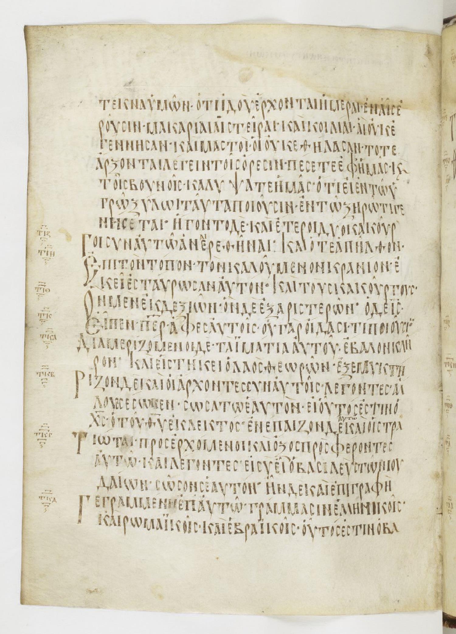 Codex Cyprius is a ninth century manuscript of the Gospels on parchment; 267 leaves, single column, 16–31 lines per column. For recent images, please visit the Bibliothèque Nationale