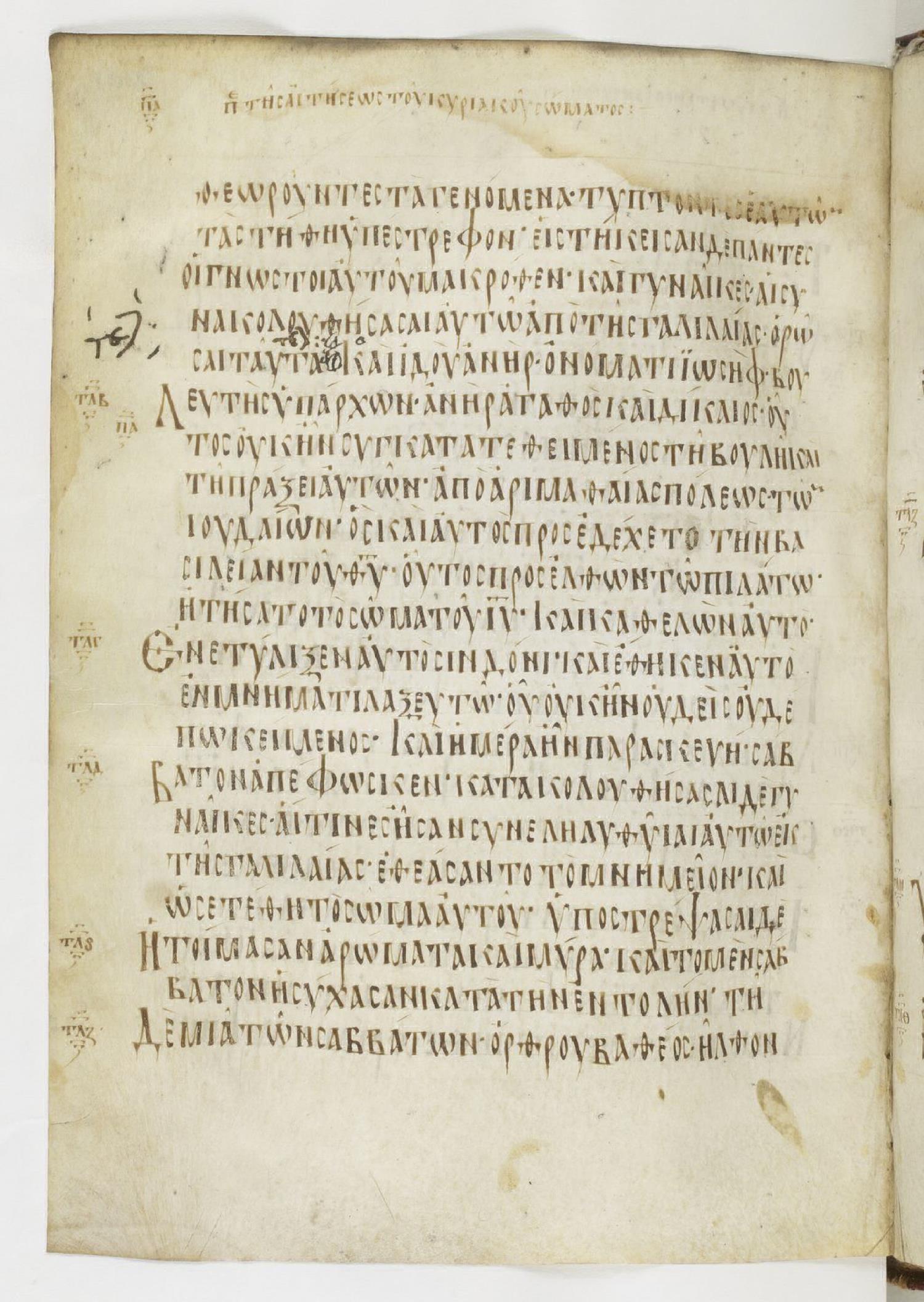 Codex Cyprius is a ninth century manuscript of the Gospels on parchment; 267 leaves, single column, 16–31 lines per column. For recent images, please visit the Bibliothèque Nationale