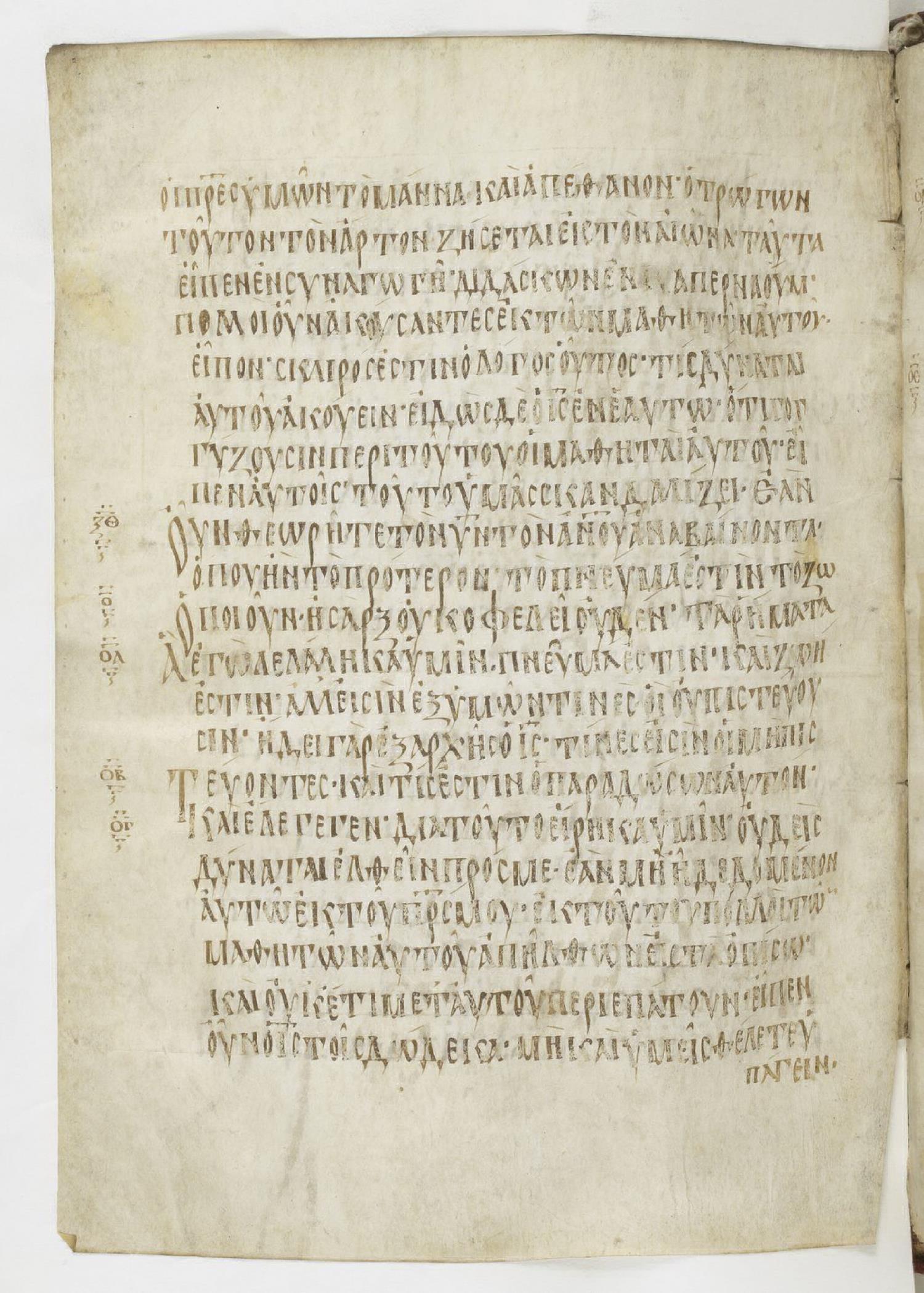 Codex Cyprius is a ninth century manuscript of the Gospels on parchment; 267 leaves, single column, 16–31 lines per column. For recent images, please visit the Bibliothèque Nationale