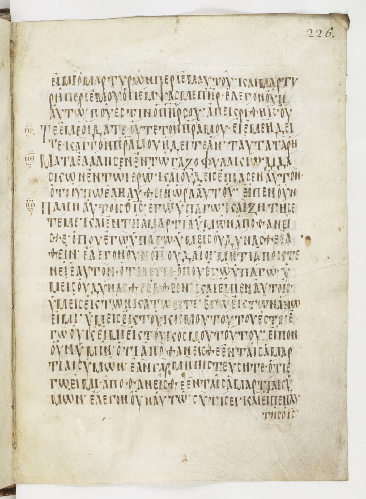 Codex Cyprius is a ninth century manuscript of the Gospels on parchment; 267 leaves, single column, 16–31 lines per column. For recent images, please visit the Bibliothèque Nationale