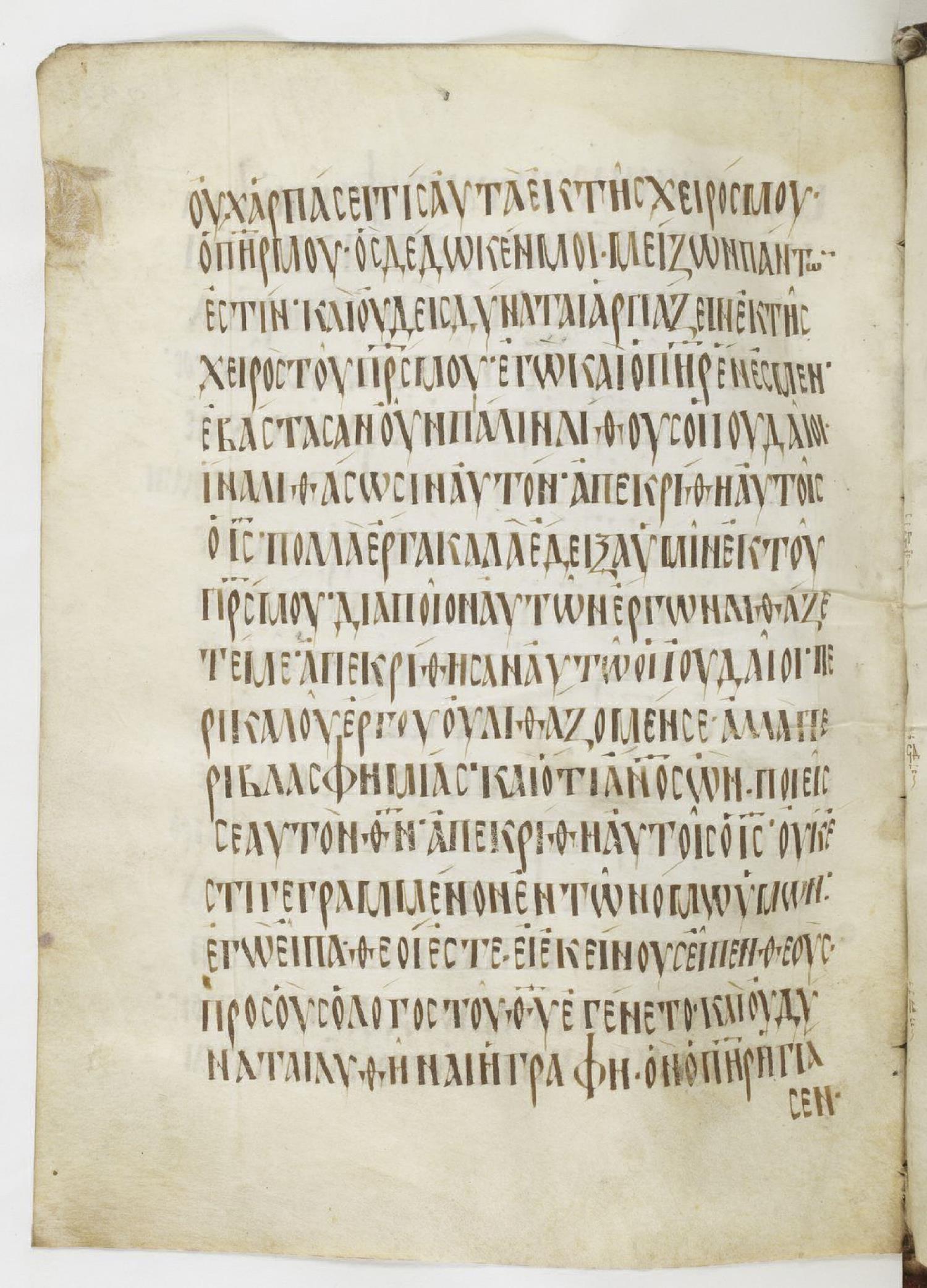 Codex Cyprius is a ninth century manuscript of the Gospels on parchment; 267 leaves, single column, 16–31 lines per column. For recent images, please visit the Bibliothèque Nationale
