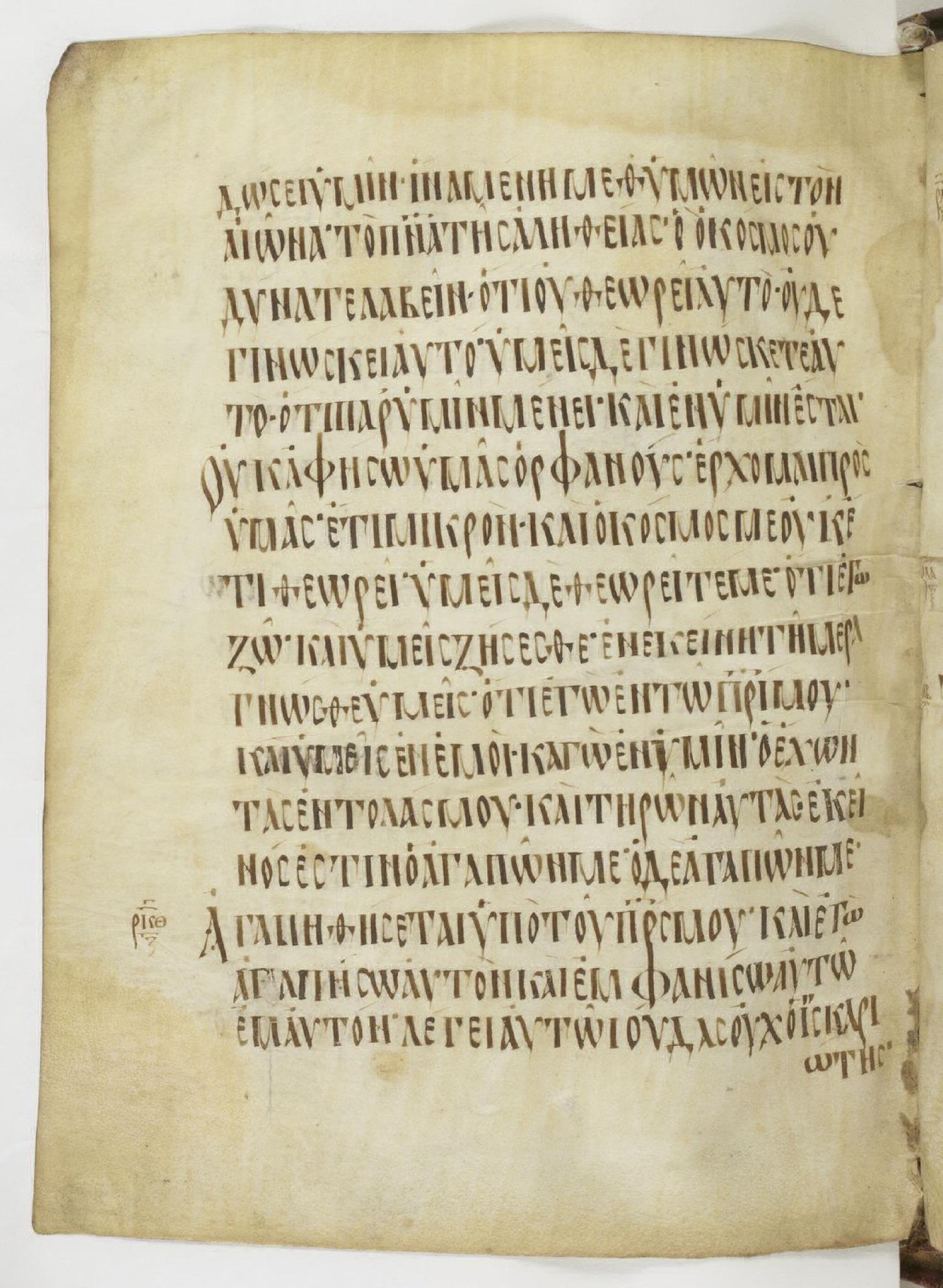 Codex Cyprius is a ninth century manuscript of the Gospels on parchment; 267 leaves, single column, 16–31 lines per column. For recent images, please visit the Bibliothèque Nationale