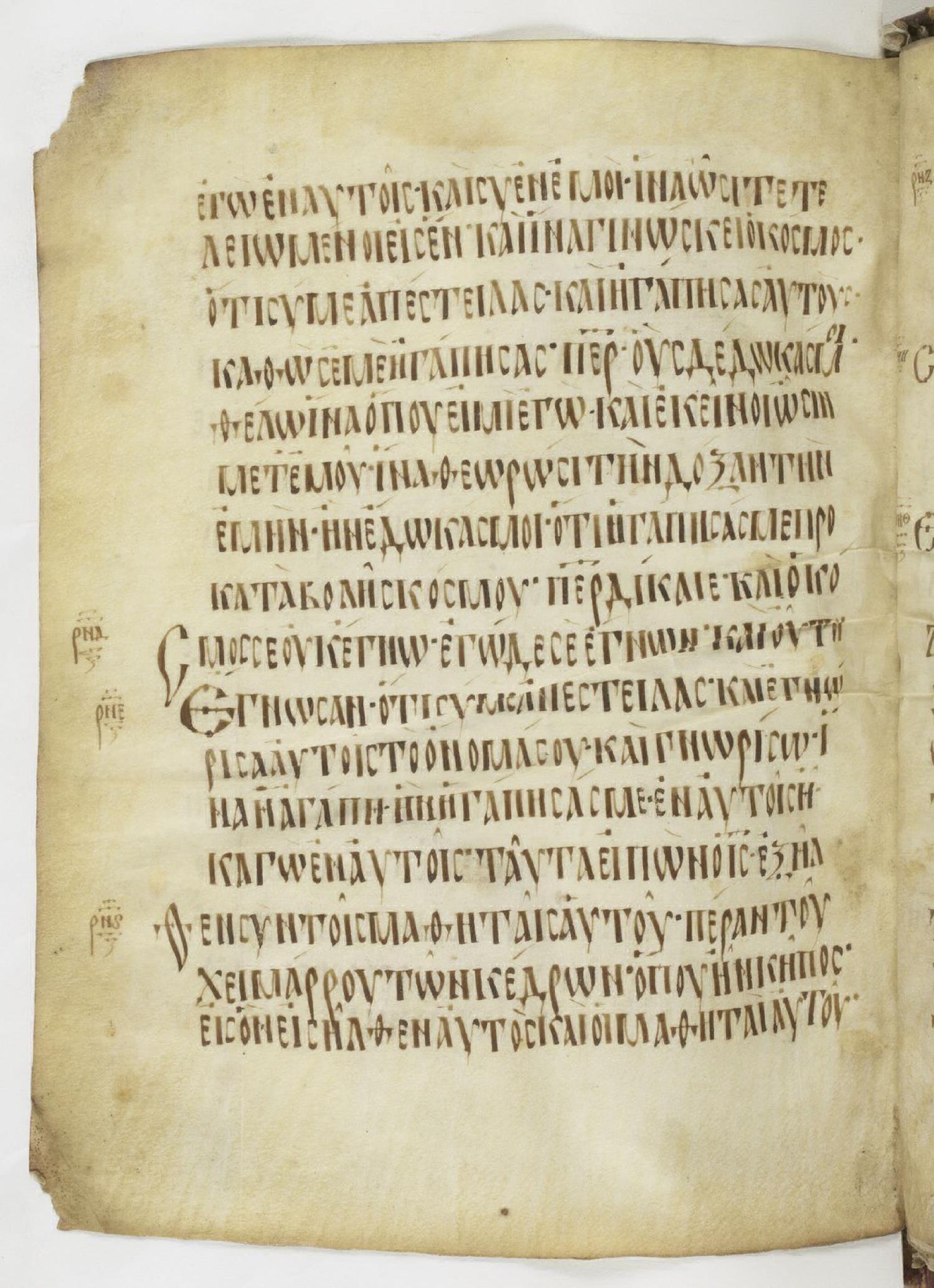 Codex Cyprius is a ninth century manuscript of the Gospels on parchment; 267 leaves, single column, 16–31 lines per column. For recent images, please visit the Bibliothèque Nationale