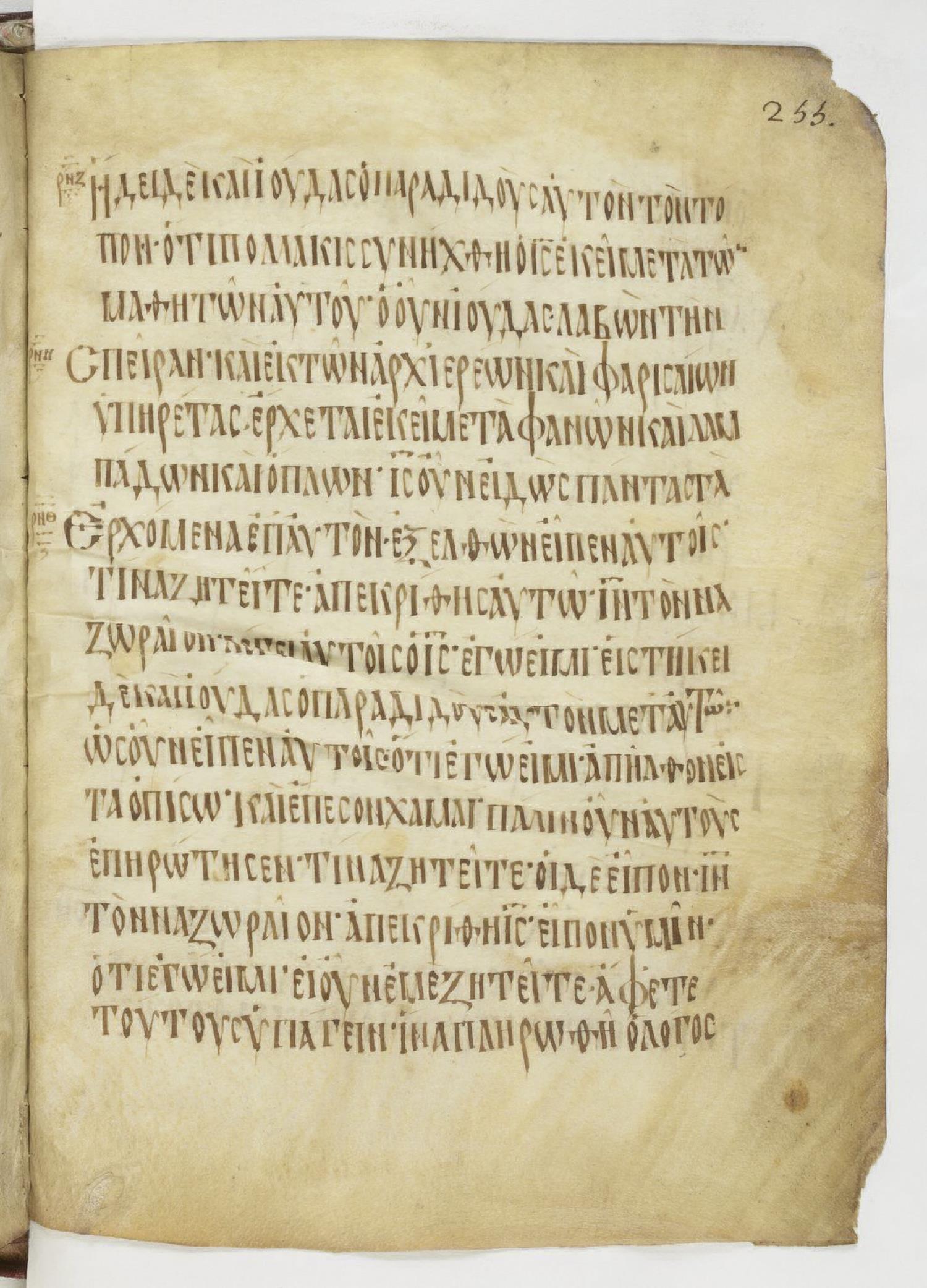 Codex Cyprius is a ninth century manuscript of the Gospels on parchment; 267 leaves, single column, 16–31 lines per column. For recent images, please visit the Bibliothèque Nationale