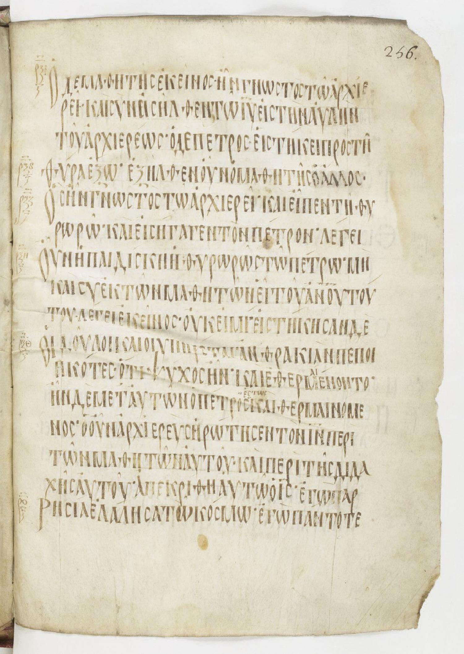 Codex Cyprius is a ninth century manuscript of the Gospels on parchment; 267 leaves, single column, 16–31 lines per column. For recent images, please visit the Bibliothèque Nationale