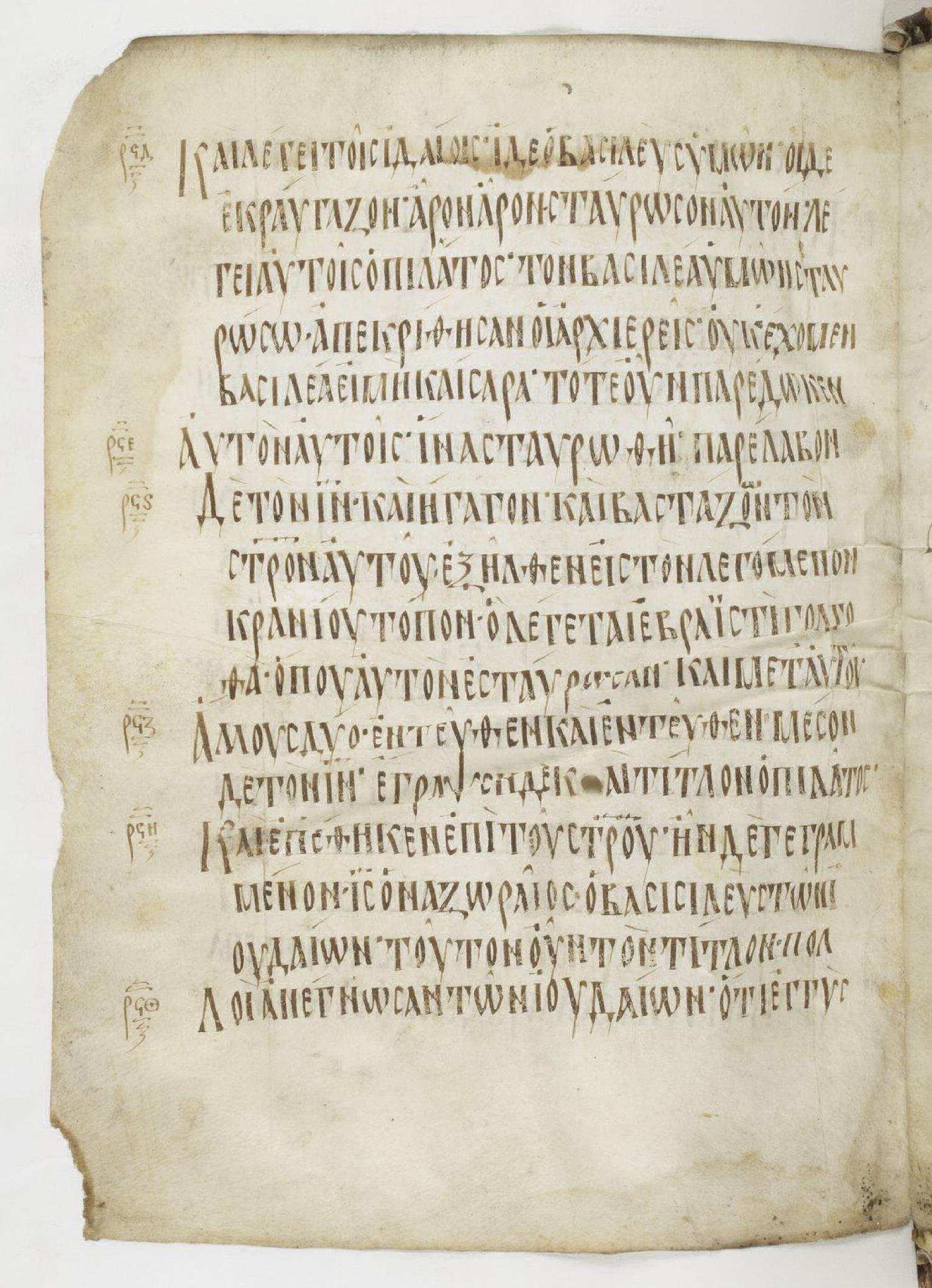 Codex Cyprius is a ninth century manuscript of the Gospels on parchment; 267 leaves, single column, 16–31 lines per column. For recent images, please visit the Bibliothèque Nationale